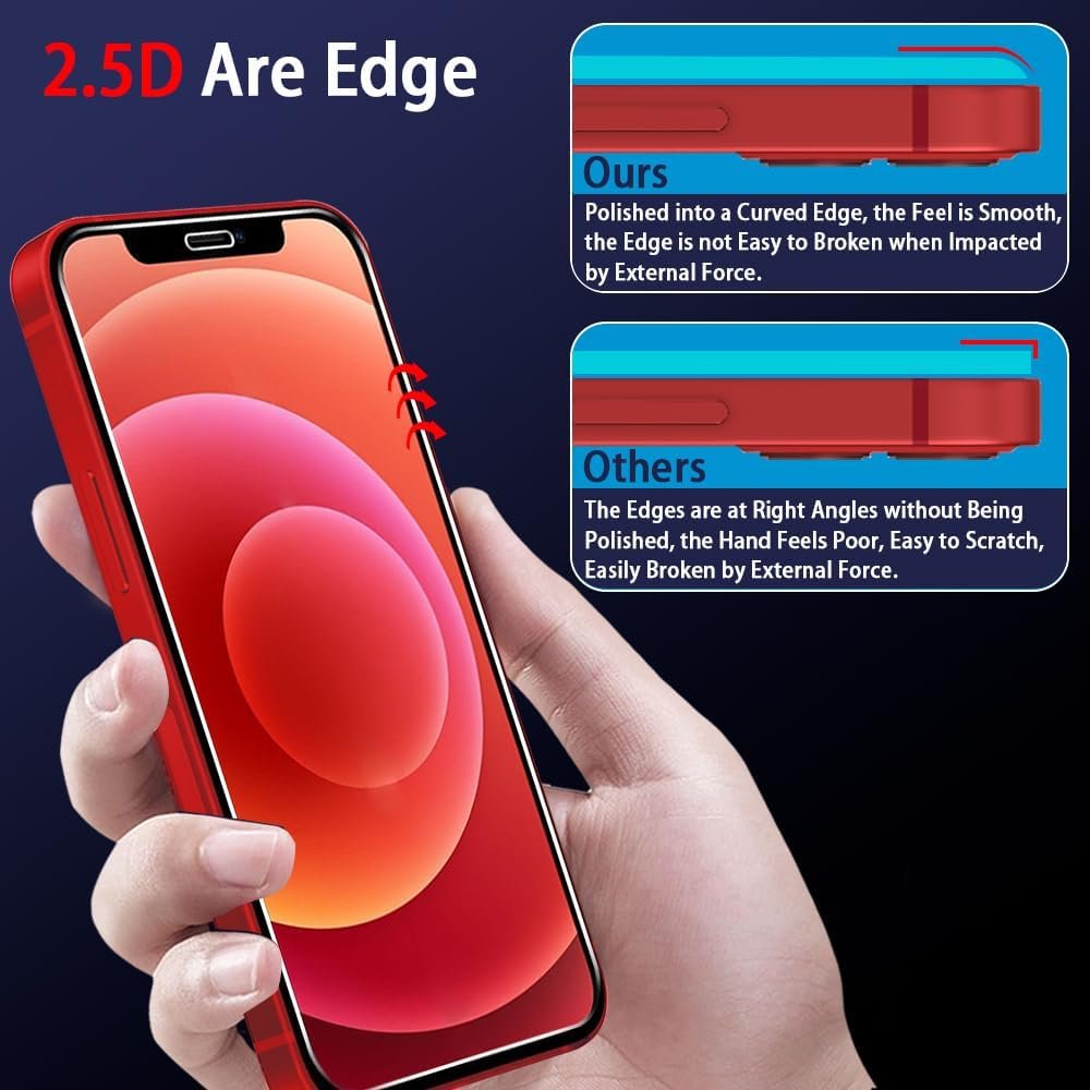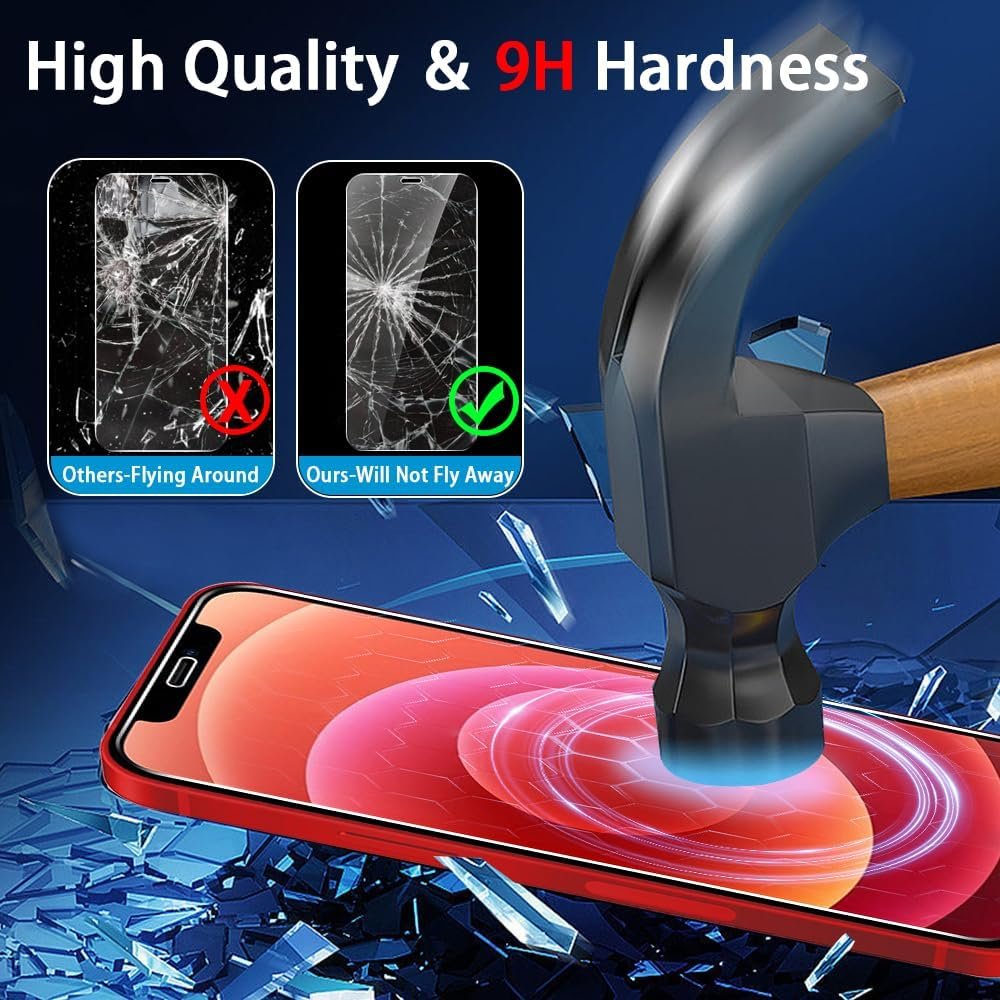 🌈[HIGH-QUALITY 9H HARDNESS] This iPhone 12 screen protector features premium 9H hardness as it has undergone a high-temperature tempering process of over 4.5 hours to ensure superior quality. Therefore, it boasts a hardness 3-5X greater than ordinary models on the market.