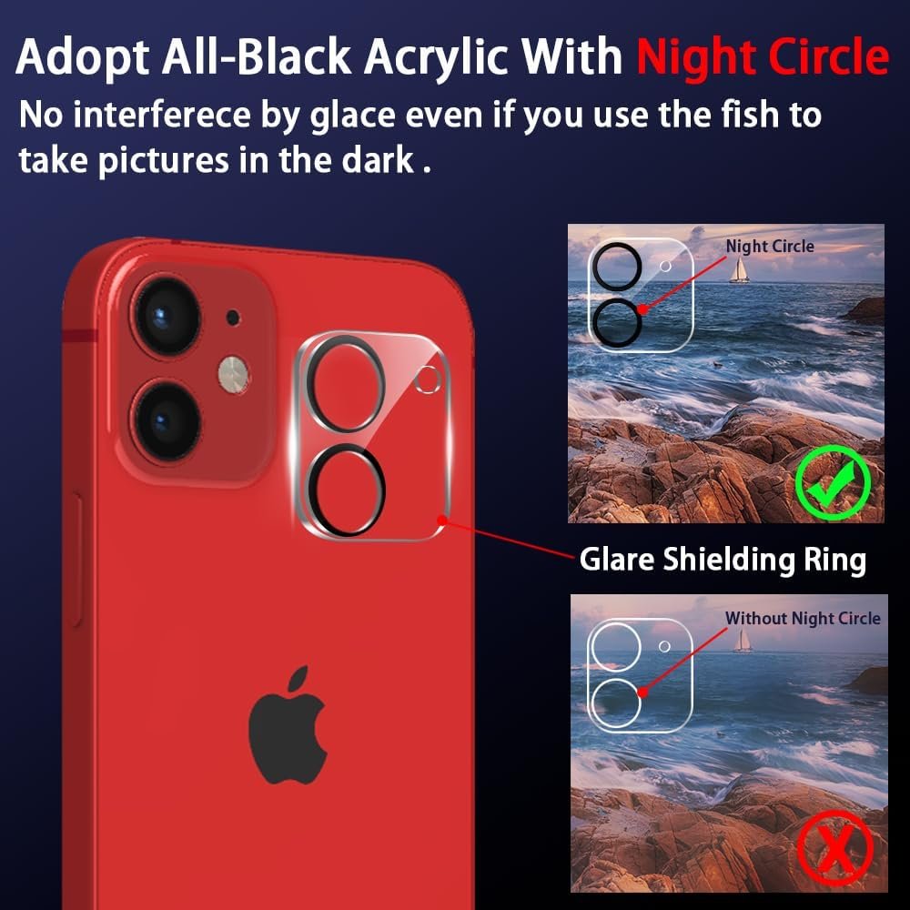 🌈[DESIGNED SPECIFICALLY FOR NIGHTTIME SHOOTING] The iPhone 12 camera protective film features an upgraded version of the “night circle” that incorporates augmented reality seamlessly. This advanced technology enhances transparency and eliminates the need for flash hole positions. When you turn on the flash to take photos at night, you can still enjoy clear image quality without affecting the original quality of the pictures and videos.