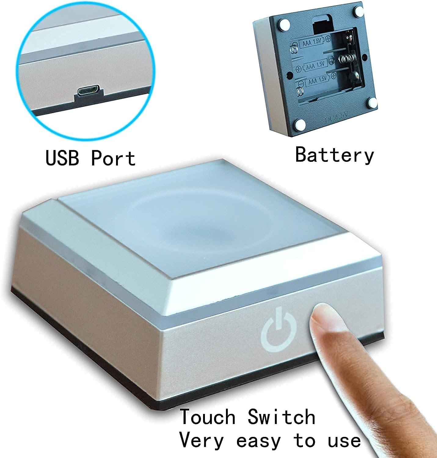 【EASY TO USE】: There’s a Touch Switch on the base,Touching the switch to change the light mode and turn it ON or OFF. Package include 1 x Crystal,1 x Led Base,1 x USB Cable,1 x Gift Box,1x Instructions.Powered by 3 set AAA Batteries or USB Cable Line(Connect to such as Computers, Portable Charger,5~10V Output Charger/Adapter,etc.)