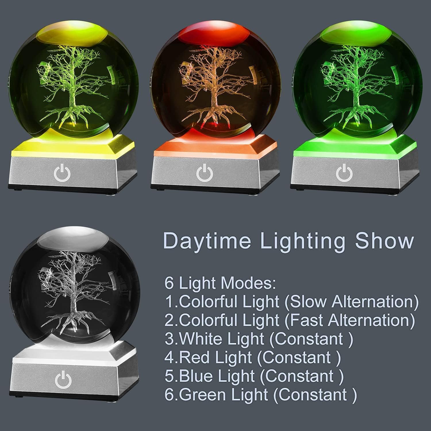 【LED COLORFUL LIGHT BASE】: Made of 100% non-toxic ABS+PVC material,Which is much more durable.SIX Lighting Modes: (Slow Flashing Multi-Coloured;Fast Flashing Multi-Coloured;Constant White Light,Red Light,Blue Light and Green Light). Light the crystal in various colors.Lighting up the Night,Shine bright like a Diamond,Choose to be Happy.