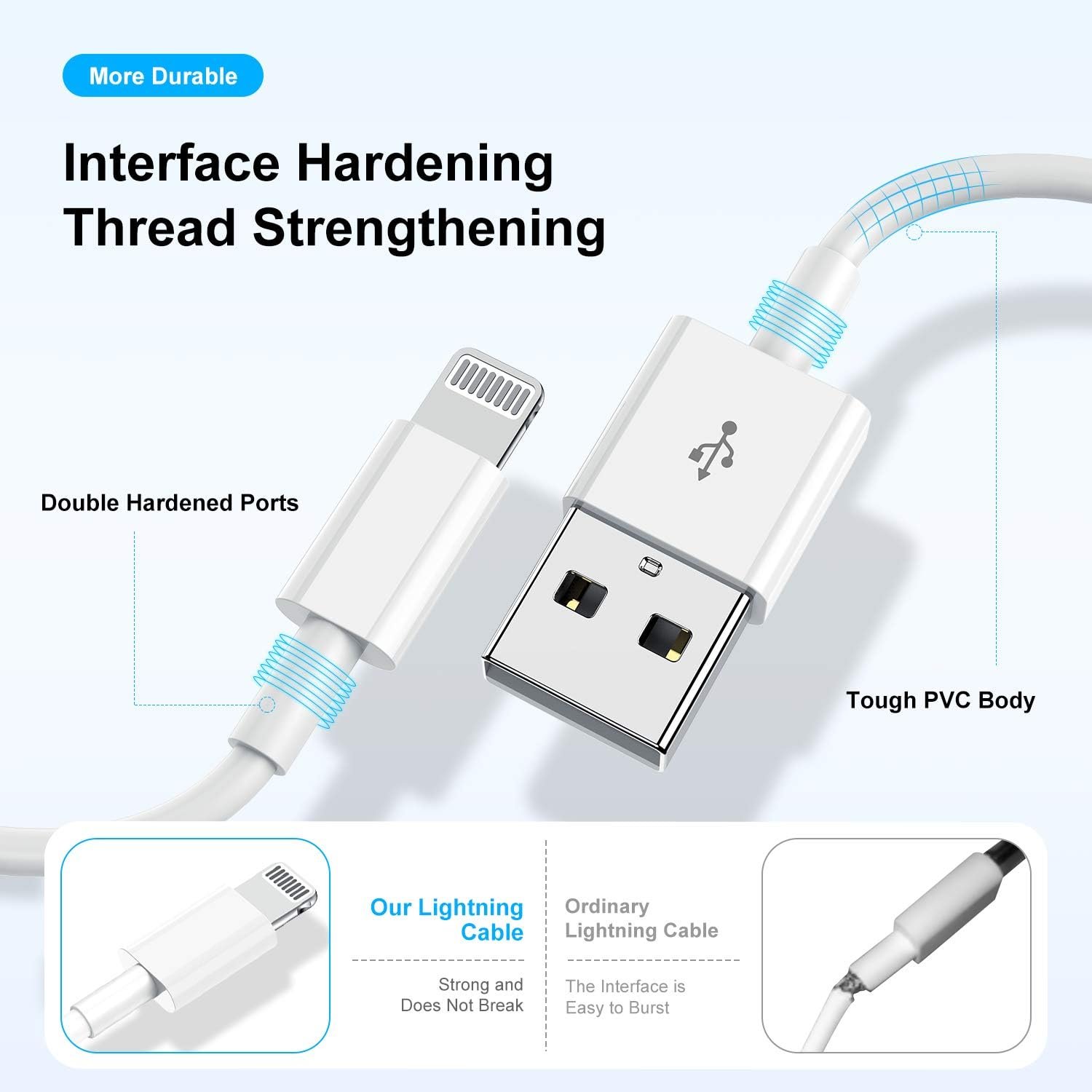 High-Quality Cables: We only use the Highest Quality Materials for design and production to ensure that no short circuit occurs during charging. High-Quality thermoplastic elastic TPE&PVC material can avoid wire tangling. The newly upgraded lightning charging port is durable and can withstand 12,000 insertion and removal experiments. The durability is 3 times that of ordinary cables.