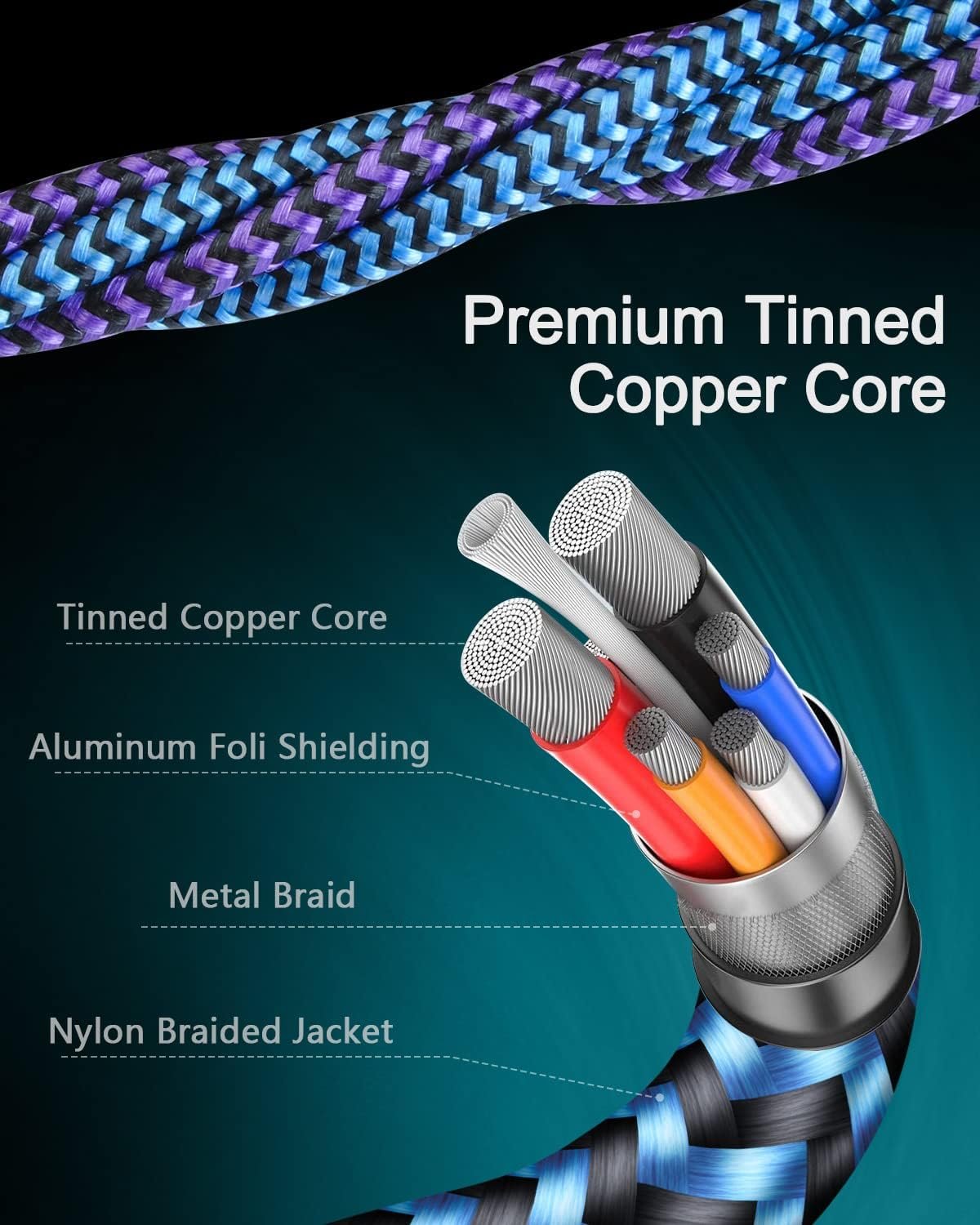 【Enough Long Cord】With the long 4 feet length of this cable, you can charge your device from a comfortable distance. The braided design provides added strength, making it more resistant to tangles, knots, and breakage.