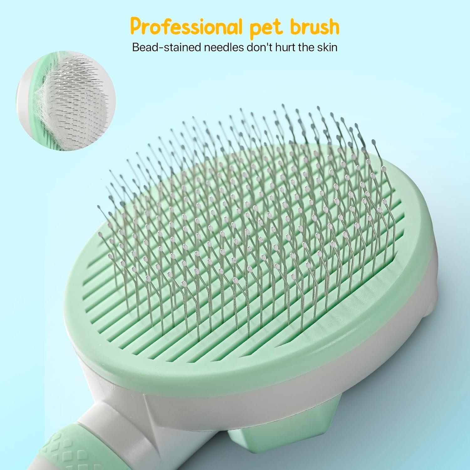【Skin Massage Needles】The mental pins on cat shedding brush with release button have round rubber tips on the ends. As a cat deshedding brush, it’s perfect for shedding and massaging your pets without scratching your pet’s skin,even the sensitive skin. Regular combing can stimulate pet skin blood circulation, speed up the metabolism, is conducive to fur renewal.