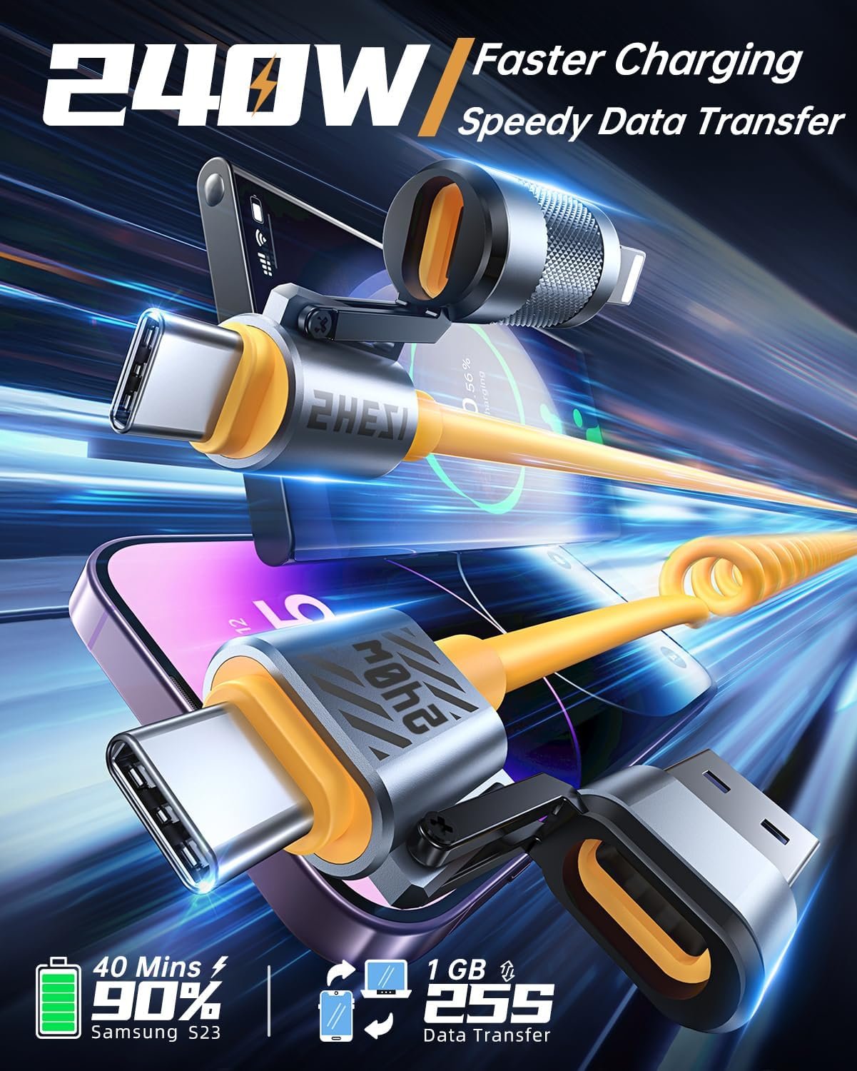 [240W Faster Charging & Data Transmission] Jixivor [SHEZI-Style] 240W coiled USB C cable provides fast, efficient charging at home, in the office or on the go. It’s made of a new high-purity and thicker copper core that reaches a new high in conduction efficiency, easily exceeding official standards. Ultra-low resistance makes charging even faster, charging 85% in 35 minutes and transferring large 1G files in 25 s. *NOTE: You need to use a 20W or above USB-C power adapter to achieve PD fast charging.