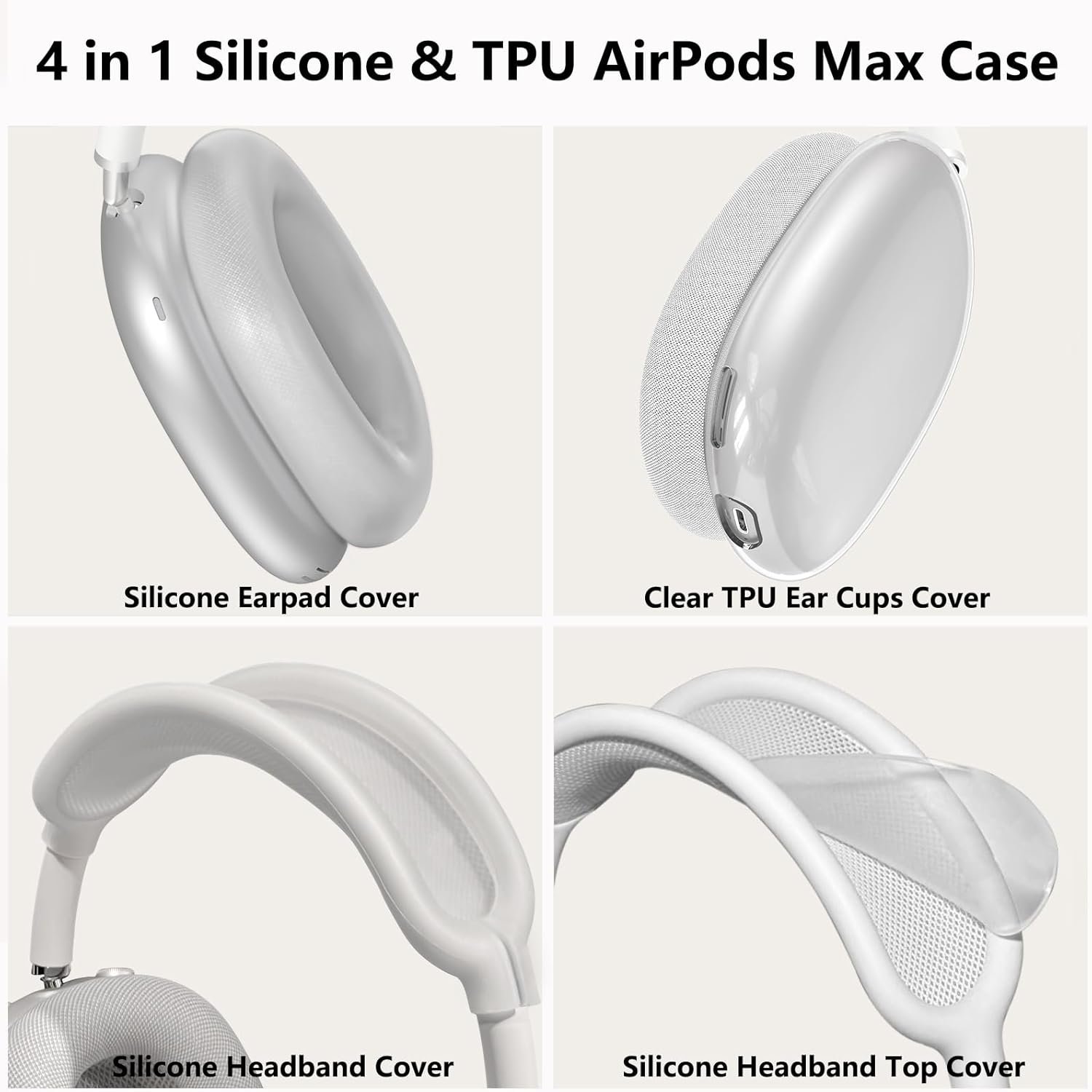 What You Get: A pair of Silicone AirPods Max Earpad Covers, A Silicone AirPods Max Headband Cover, A pair of clear TPU AirPods Max Ear Cups Covers, A Silicone Headband Top Cover. (Please Note: AirPods Max is NOT included.)