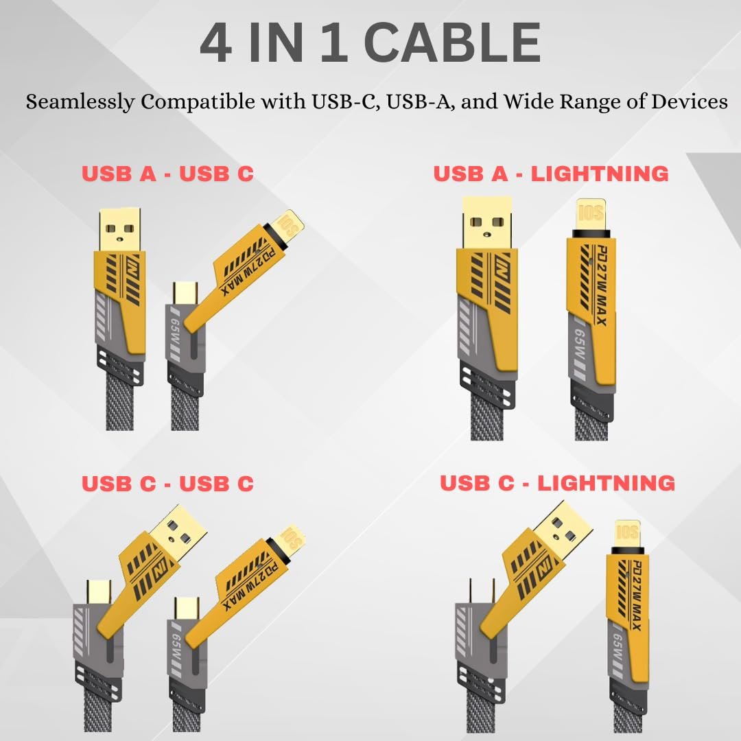 4-in-1 USB C Cable (6FT, 60W Fast Charging) This versatile 4-in-1 charging cable features multiple ports (Lightning, USB C, USB A), providing seamless compatibility with a wide range of devices, including iPhone 16/15/14/13/12/Pro, Samsung, and more. With 60W fast charging, it ensures efficient power delivery, while the 6-foot length offers flexibility and convenience for daily use. Whether you’re charging multiple devices or looking for a travel-friendly solution, this multi-charging cable is your go-to for staying powered up on the go.