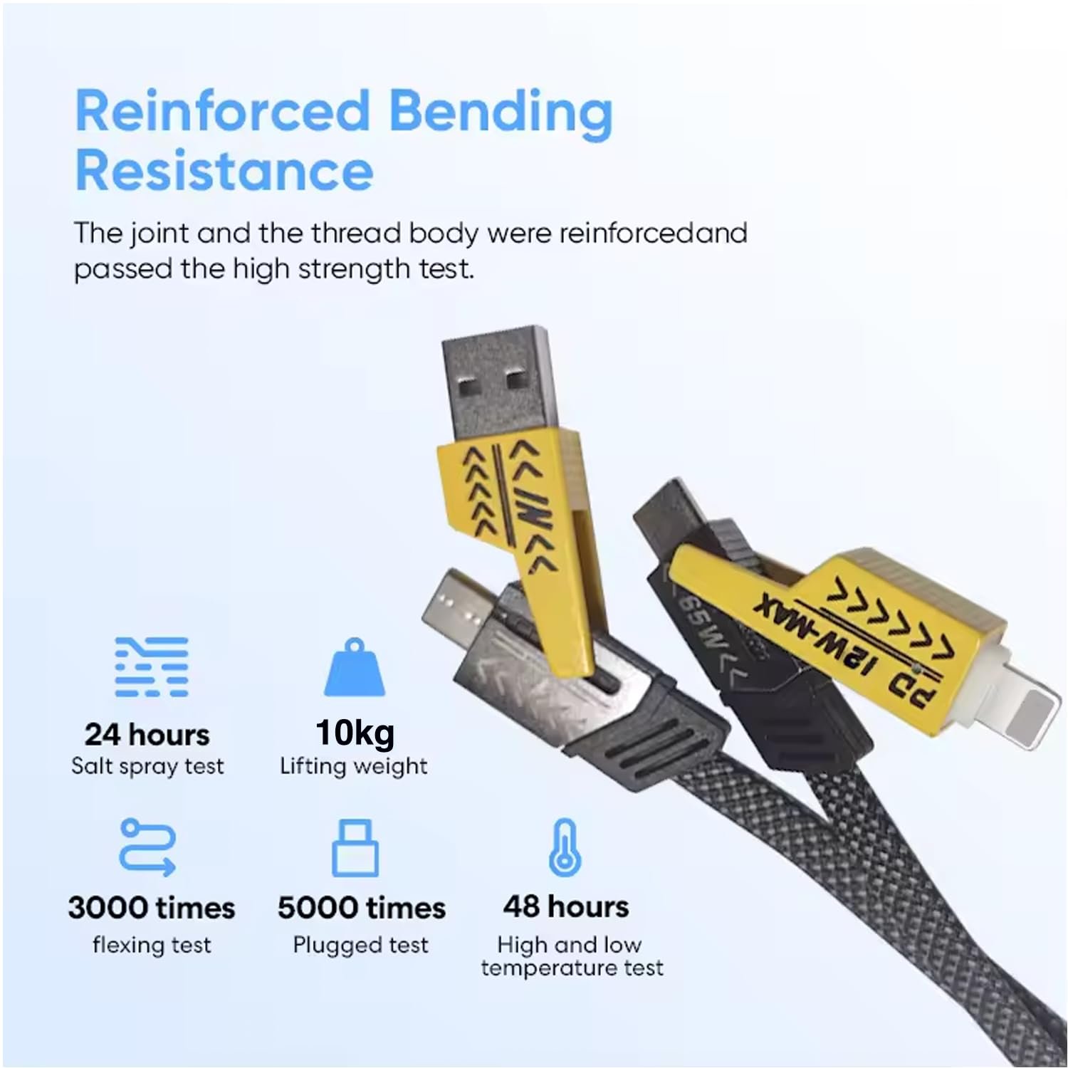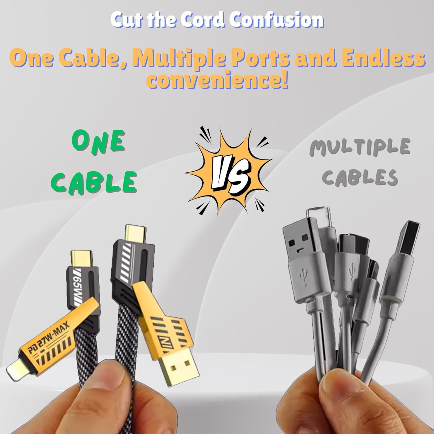 ✅ Fast Charging : Experience rapid charging with our 4-in-1 cable, supporting up to 27W for phones and 65W for iPads. It can power your device to 50% in just 30 minutes.