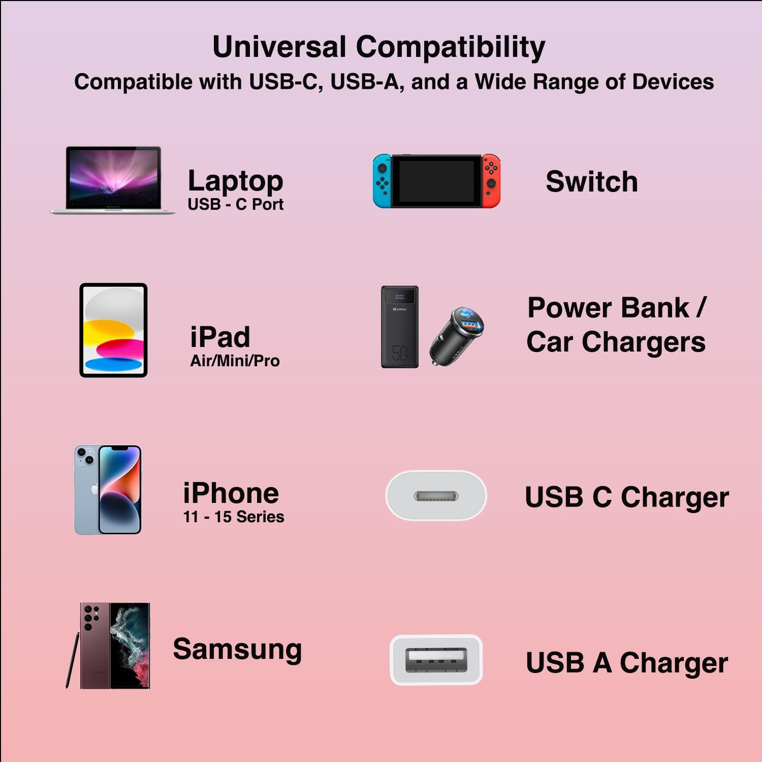 ✅ Versatility & Multi-Charging: Charge multiple devices effortlessly with four different interfaces: USB-A to USB-C, USB-C to USB-C, USB-C and USB-A. Ideal for smartphones, tablets, laptops, and a variety of other devices.