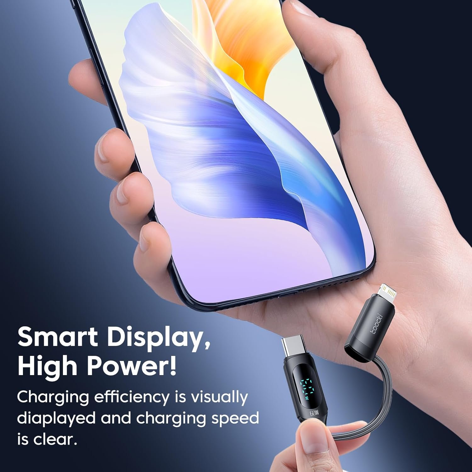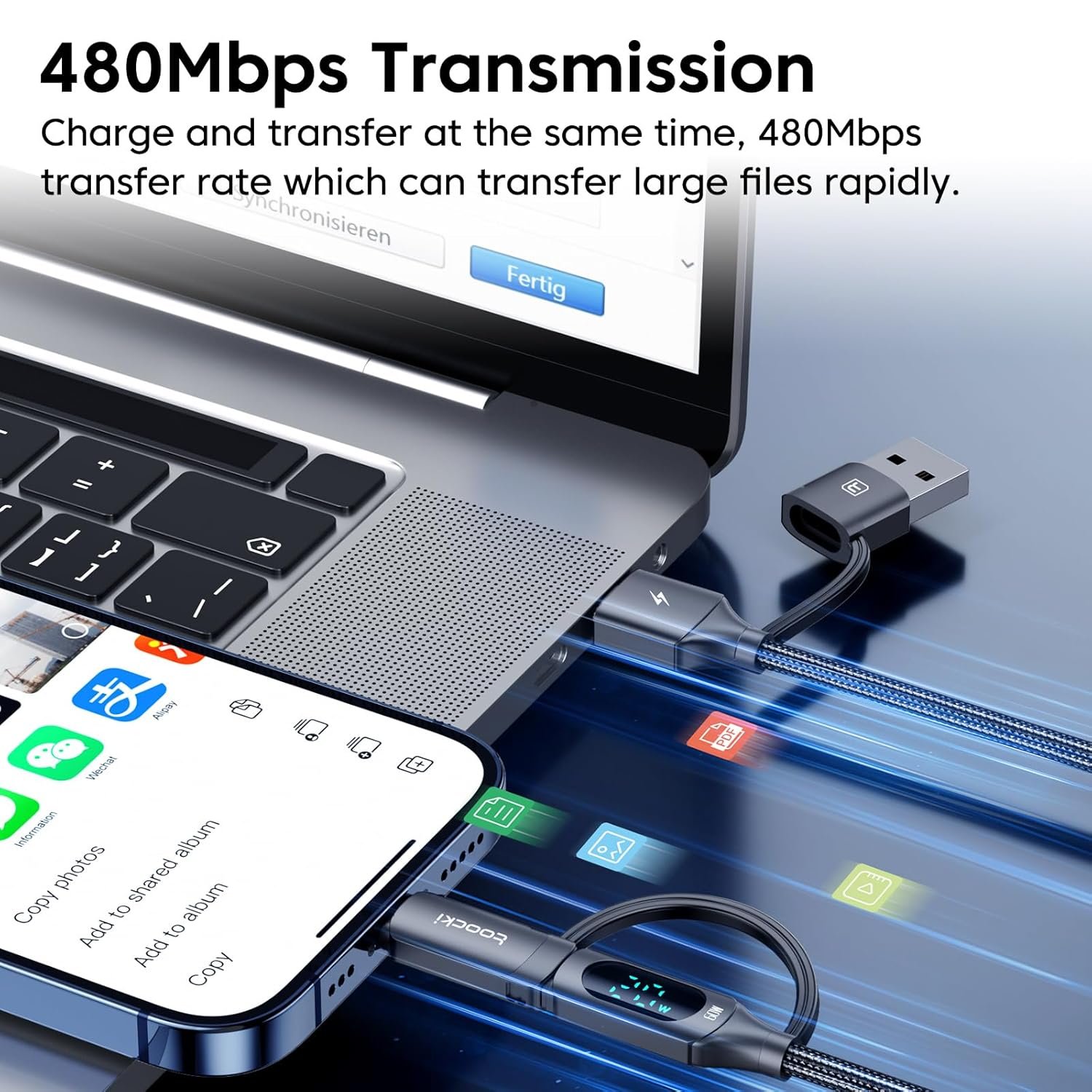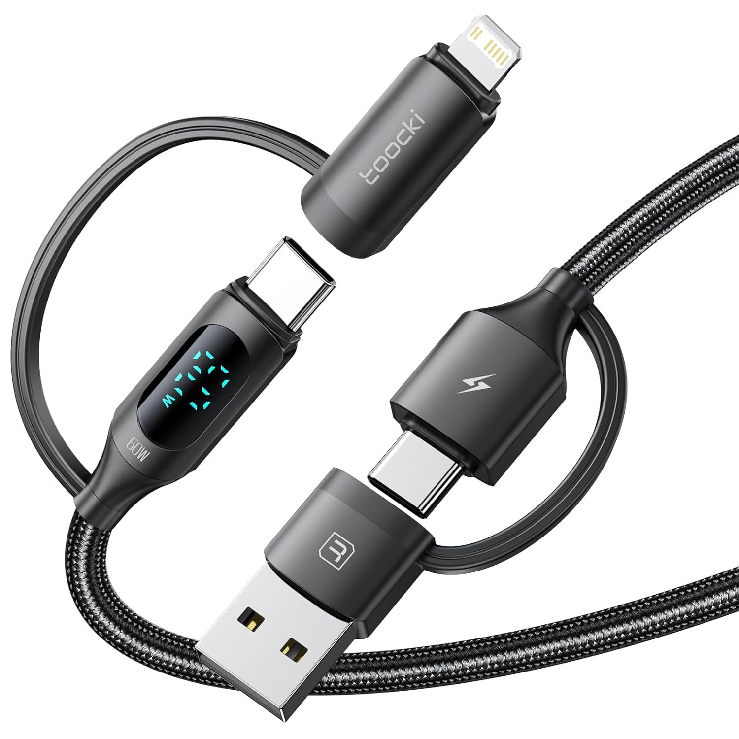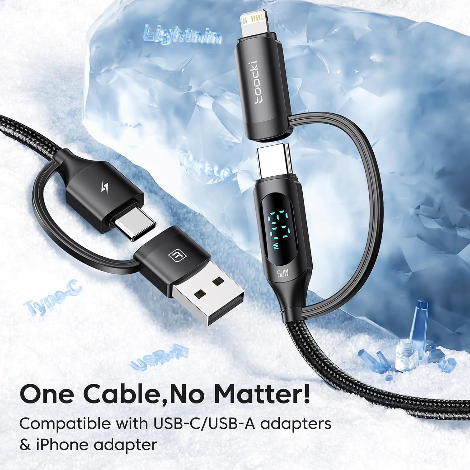4 in 1 USB C Cable, PD 60W C to C Cable Fast Charging Multi Charger Cord USB C to USB C Adapter with LED Display Nylon Braided Cable for IP 16 15 14 13 iPad MacBook, 4FT