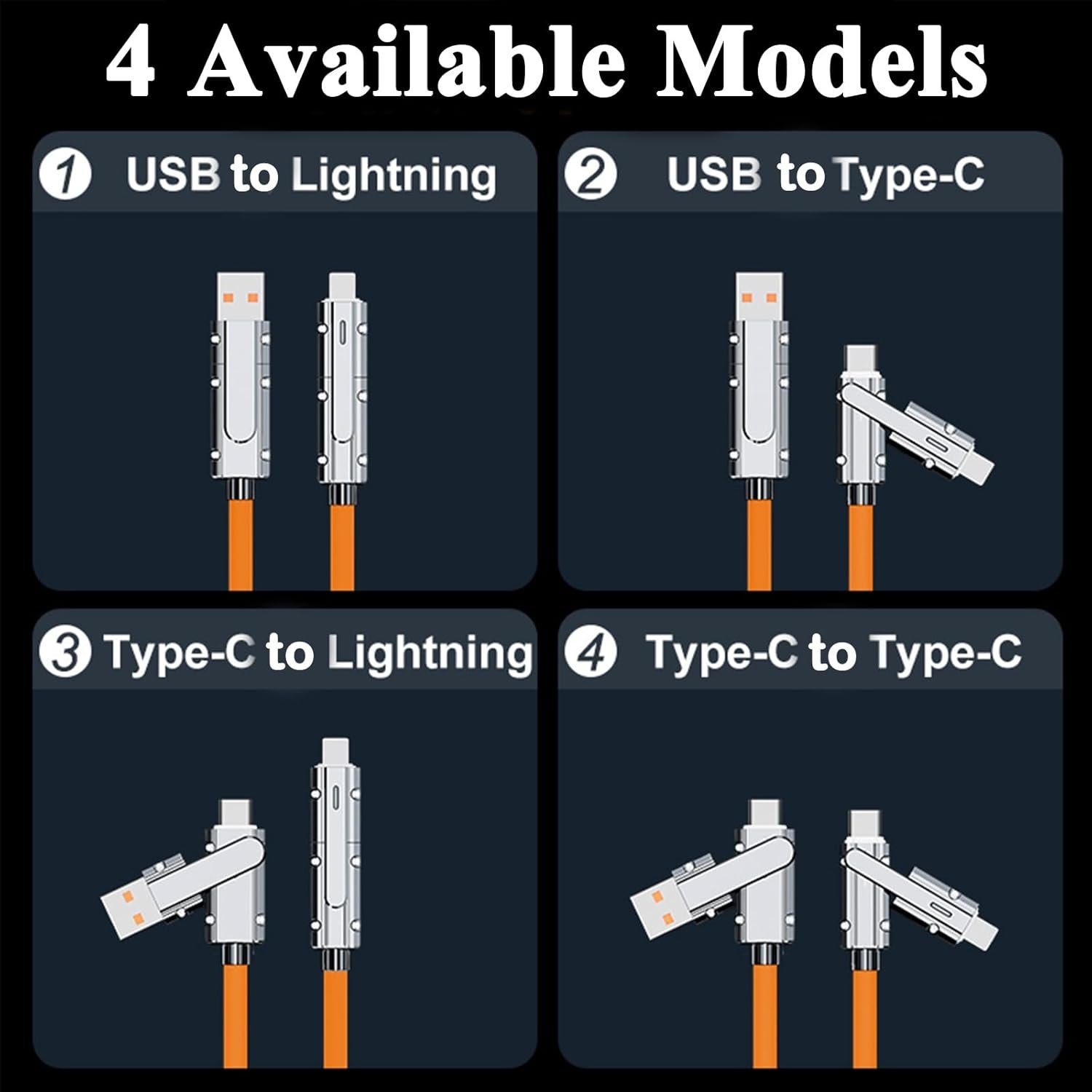 4 in 1 Chubby Charging Cable:our USB-C fast charger cable combines four ports-USB C to USB C,USB C to Lightning,USB A to C and USB A to Lightning,all in one cable,say goodbye to multiple charging cable.Providing a comprehensive solution for your fast charging and data transfer needs.