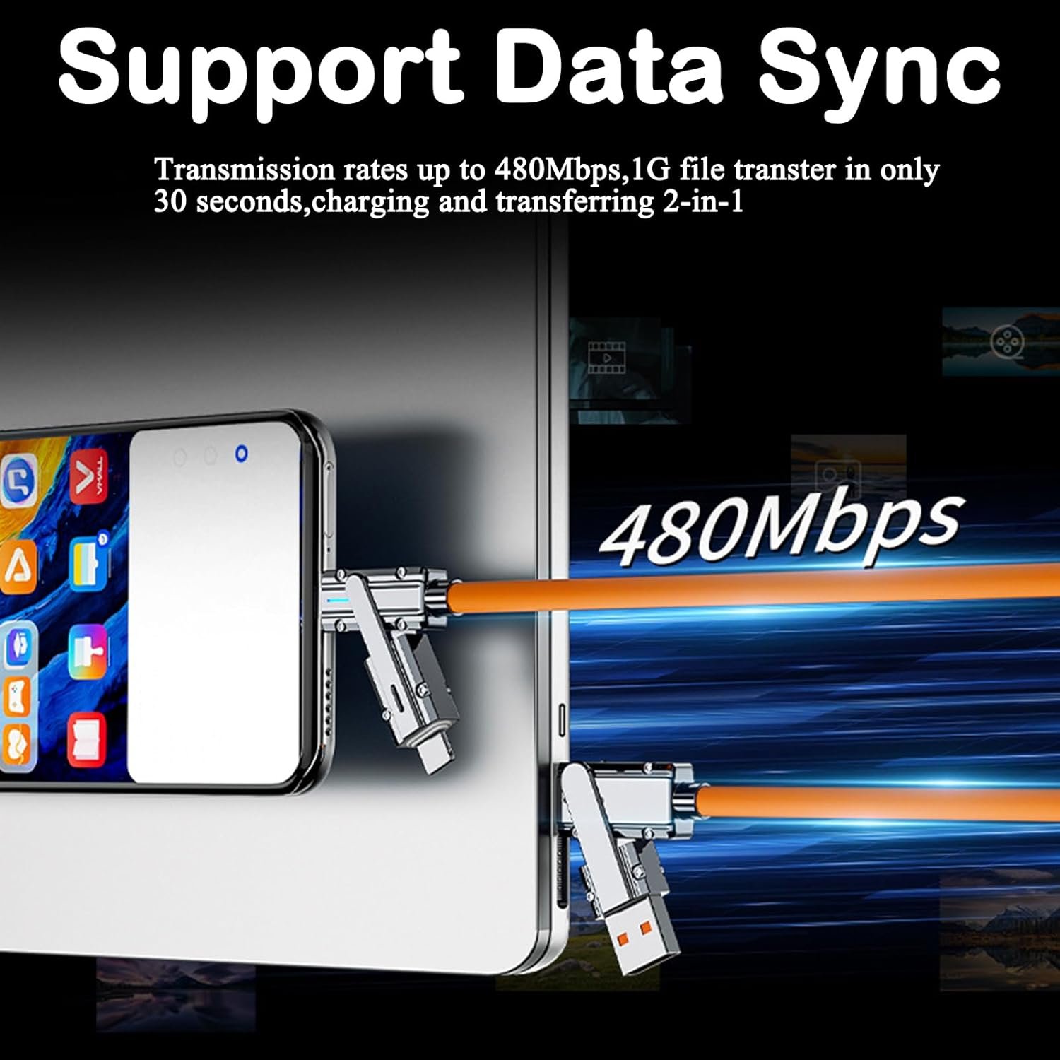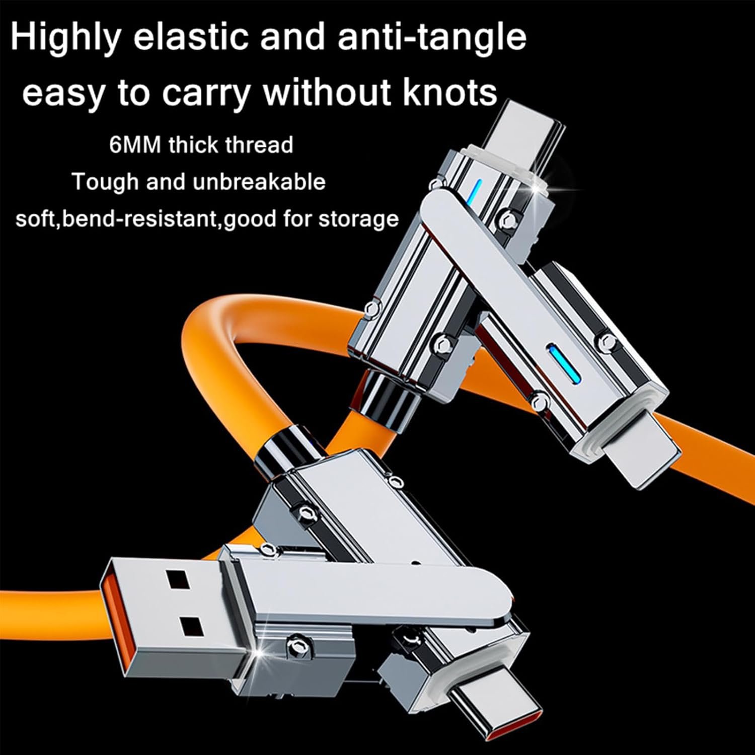 Durable Chubby Cable&Sturdy Zinc Alloy:4 in 1 fast chubby USB C cable is made of sturdy zinc alloy and soft skin-friendly silicone,With a robust 6mm thickness,its special soft design can withstand more than 50000 times of bending and stand up to daily wear and tear.