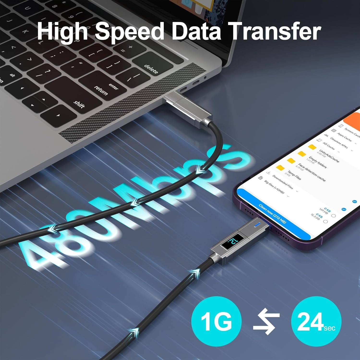 Just One Charging Cable for All!Digital Data Real-time Display Charging Status and Speed.