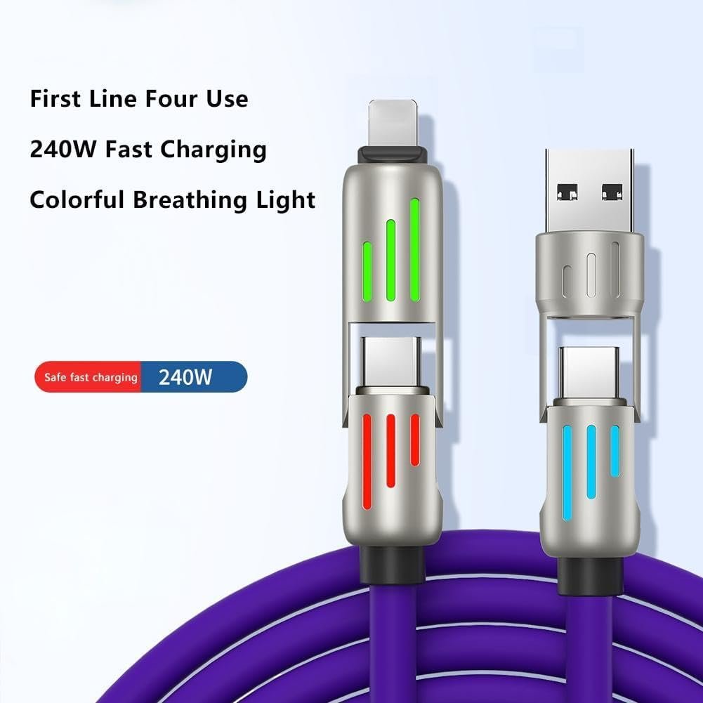 Power All Your Devices: 4 in 1 usb charging cable fast charging cable is compatible with all devices on the market (240W/140W/100W/60W/30W), with a max output power of 240W, providing a worry-free and versatile charging experience