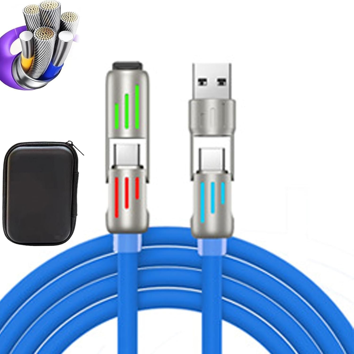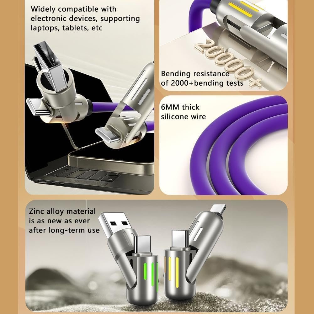 Ultra-long Service Life: 4 in 1 usb 240w cable iquid silicone data cable is made of robust material and has a longer service life than cables from other brands. It can withstand over 20,000 bend tests