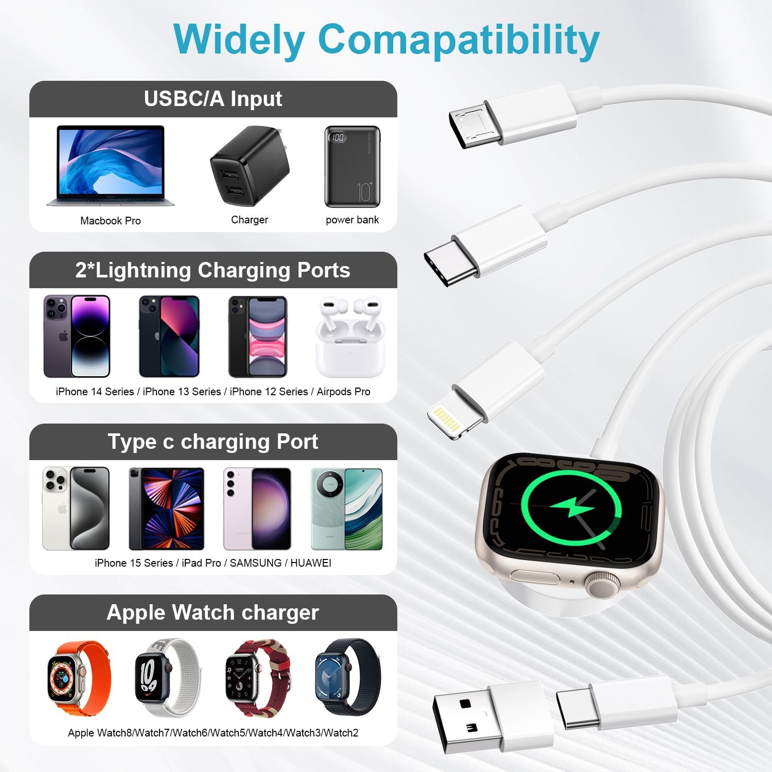4 in 2 Multi Charging Cable for Apple Watch Charger and iPhone Widely Compatibility