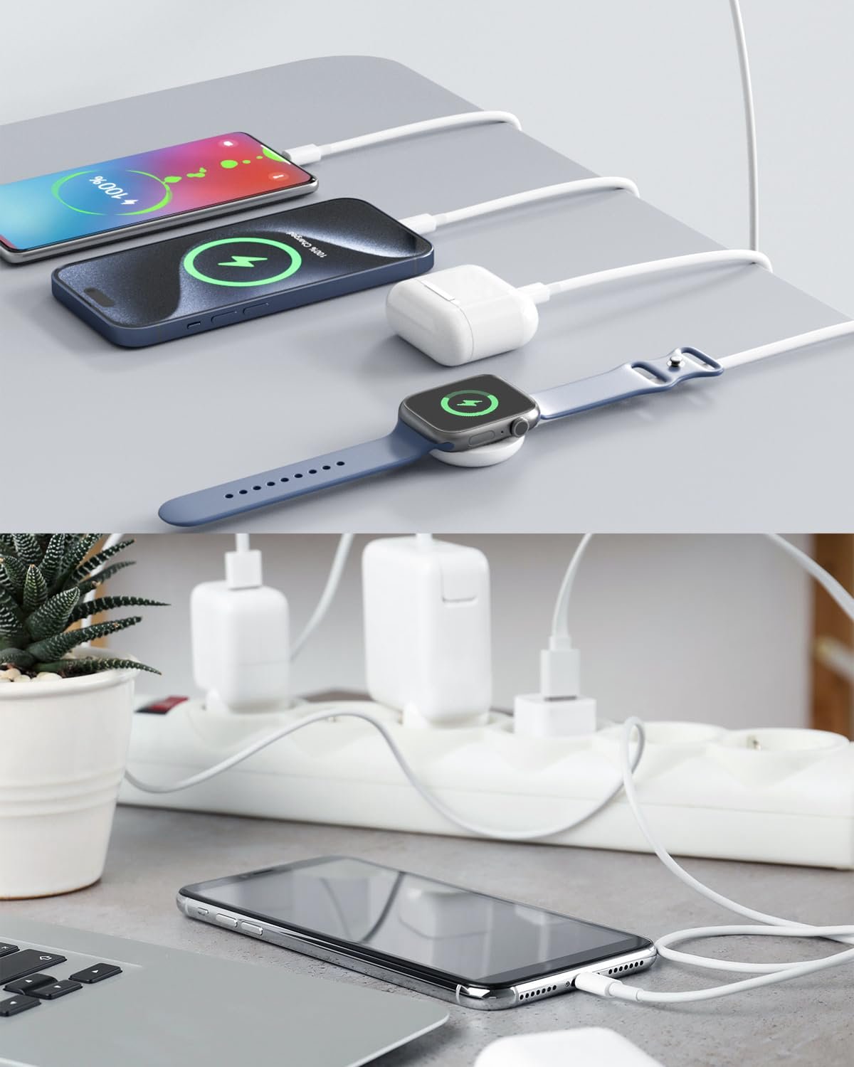 iPhone and apple watch charger cord with simple portable design, light weight and easy to carry or put in your pocket, handy for home, office, and vacations.