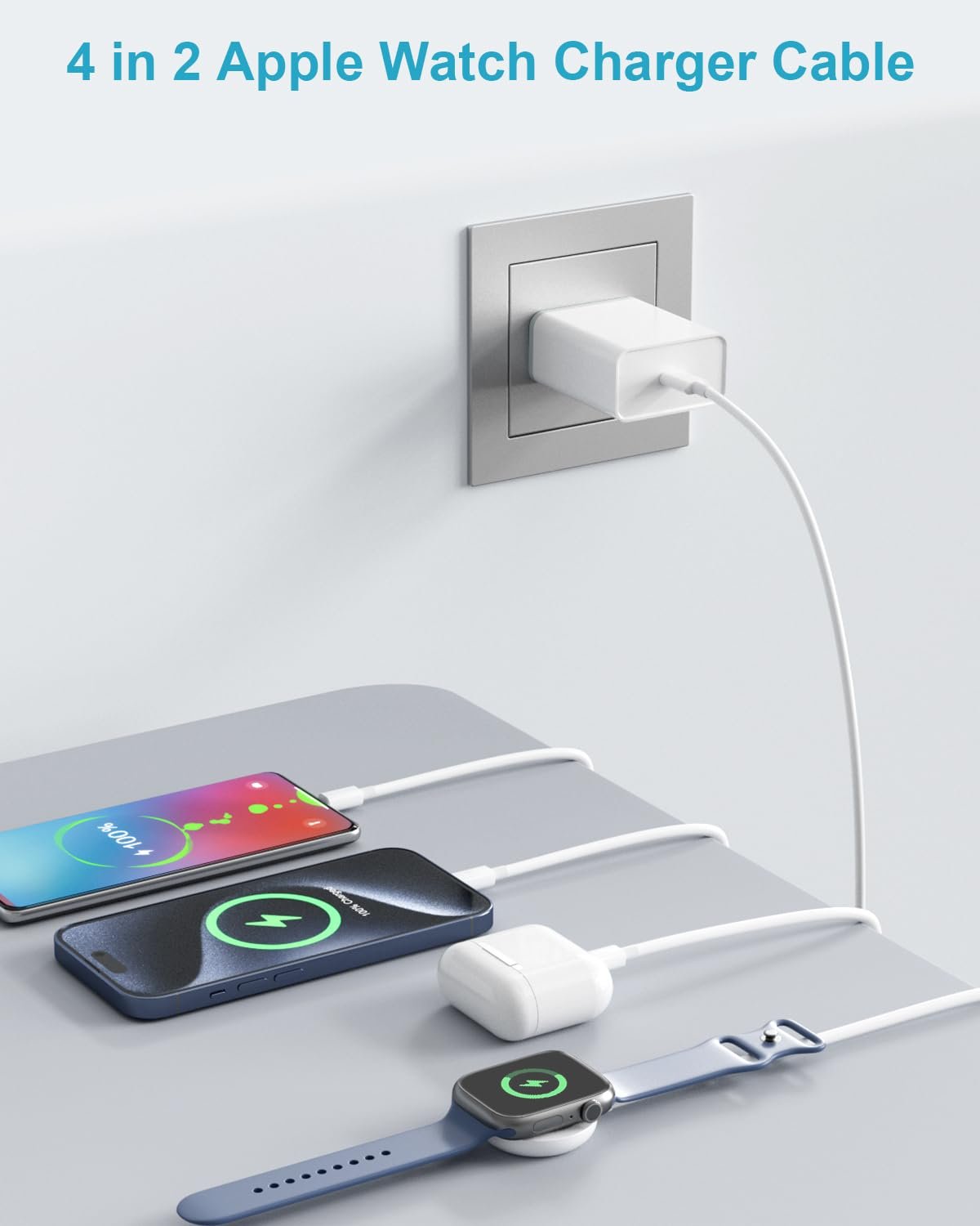 [What You’ll Get] 1 x 4 in 2 Multi Charging Cable for Apple Watch and iPhone Charger, 1x A-C Adapter. We offer a 12-month worry-free warranty If you have any questions about this apple watch cable, please feel free to contact us.