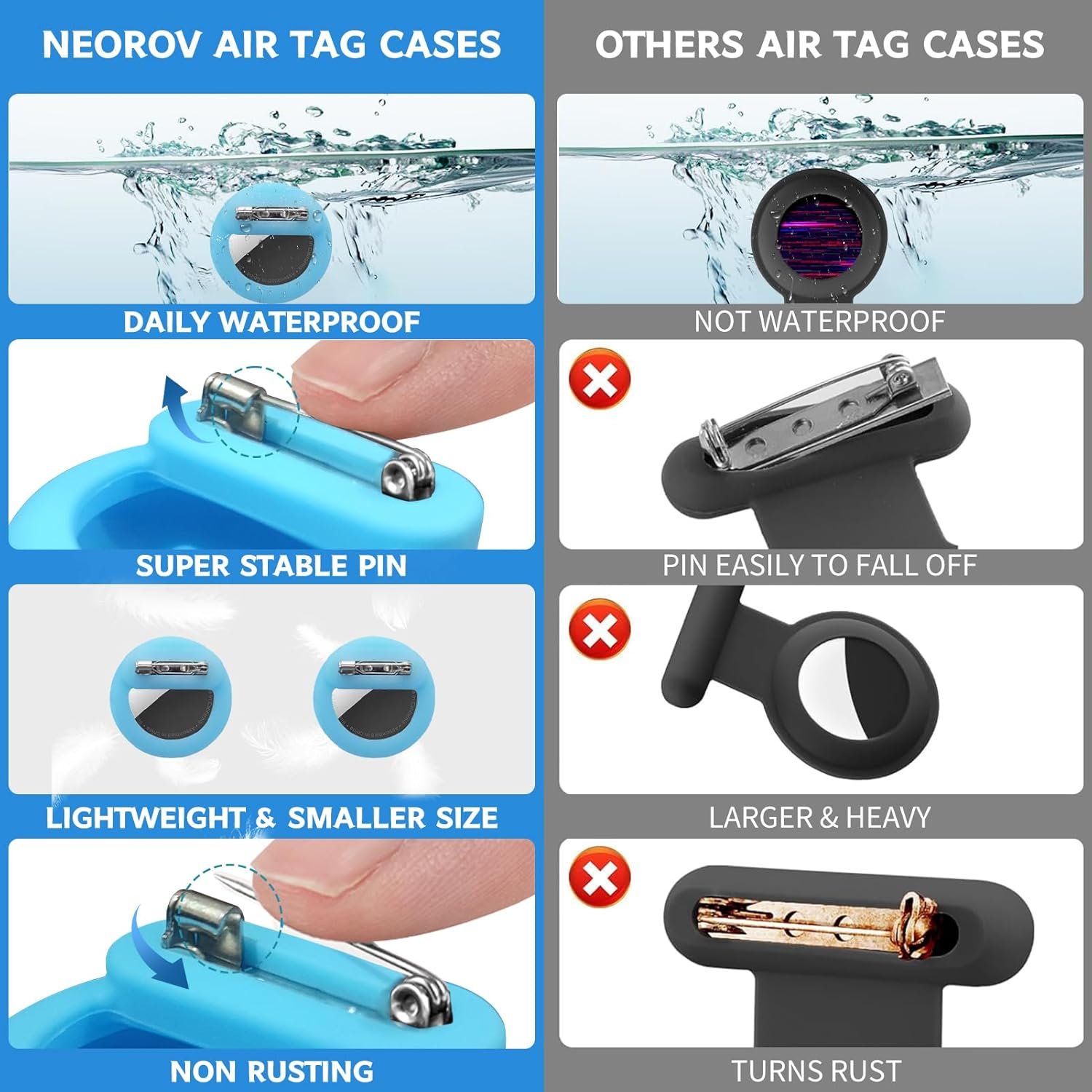 Adaptable & Reliable & Stable: NeoRov Airtag holder is the perfect adapter case for apple airtag. It basically does not increase the weight and volume of air tag too much. In addition, The airtag case is equipped with the best stainless steel safety pin, which will not fall off from clothes, very reliable.