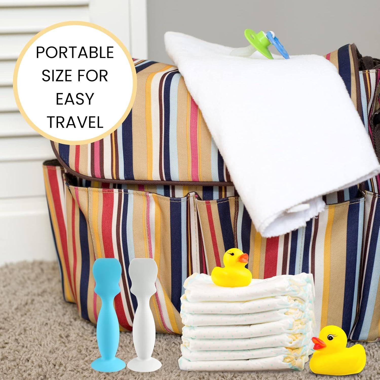 Improved Design: The diaper cream spatulas come with handy suction cup base will secure to any flat surface, so you can bring it with you into public restrooms when you need to use the changing table.