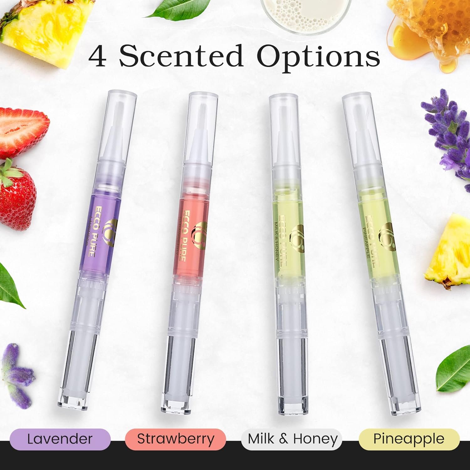 Pleasant Scents with Aromatherapy Benefits – Enjoy 4 delightful fragrances that provide a soothing and relaxing experience on your nail care routine. Choose from lavender, strawberry, pineapple and milk & honey.