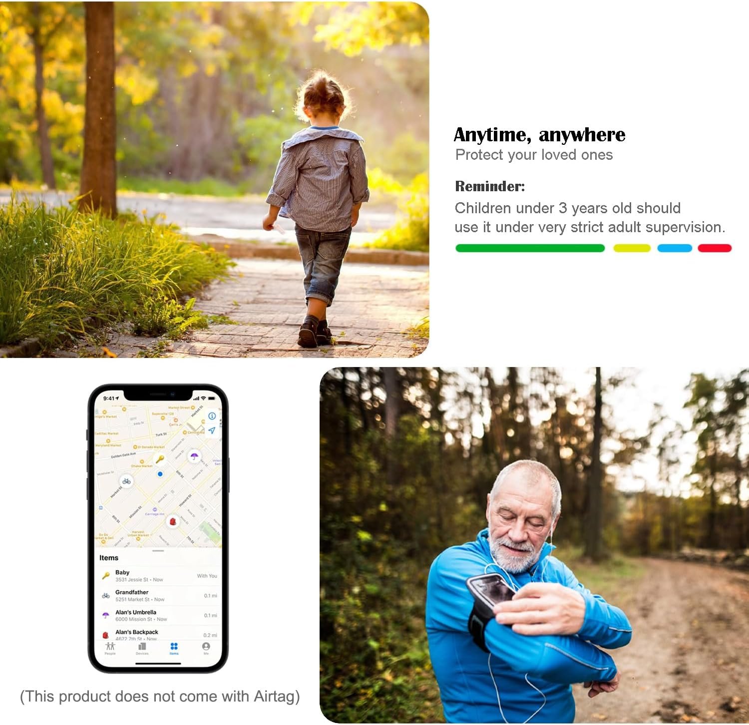 [Kind remind] It is commonly used for children, kids and the elder. The toddlers under the age of 3 must use it under strict adult supervision, as the AirTag holder includes safety pin components, so as to prevent accidental swallowing or injury. It can also be used on any textile items such as backpacks and pet collars.