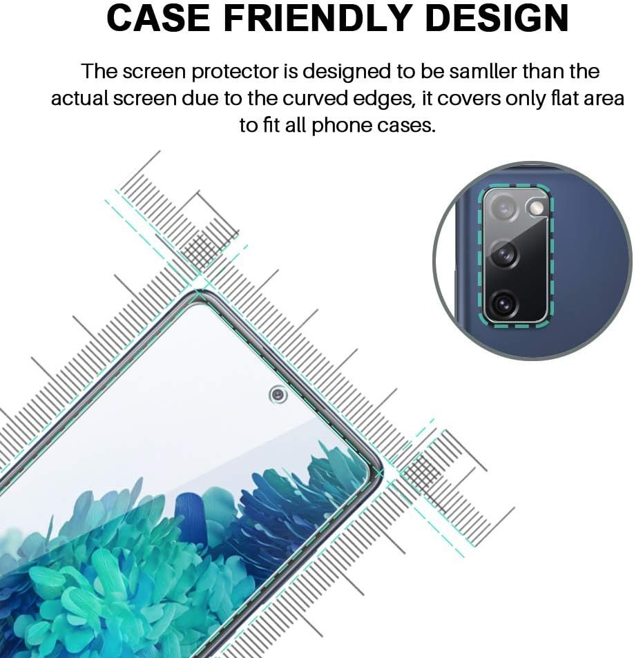 【Designed for】2 pack tempered glass screen protector and 2 pack camera lens protector for Samsung Galaxy S20 FE 5G / Galaxy S20 Fan Edition (6.5-inch). Not fits for any other device