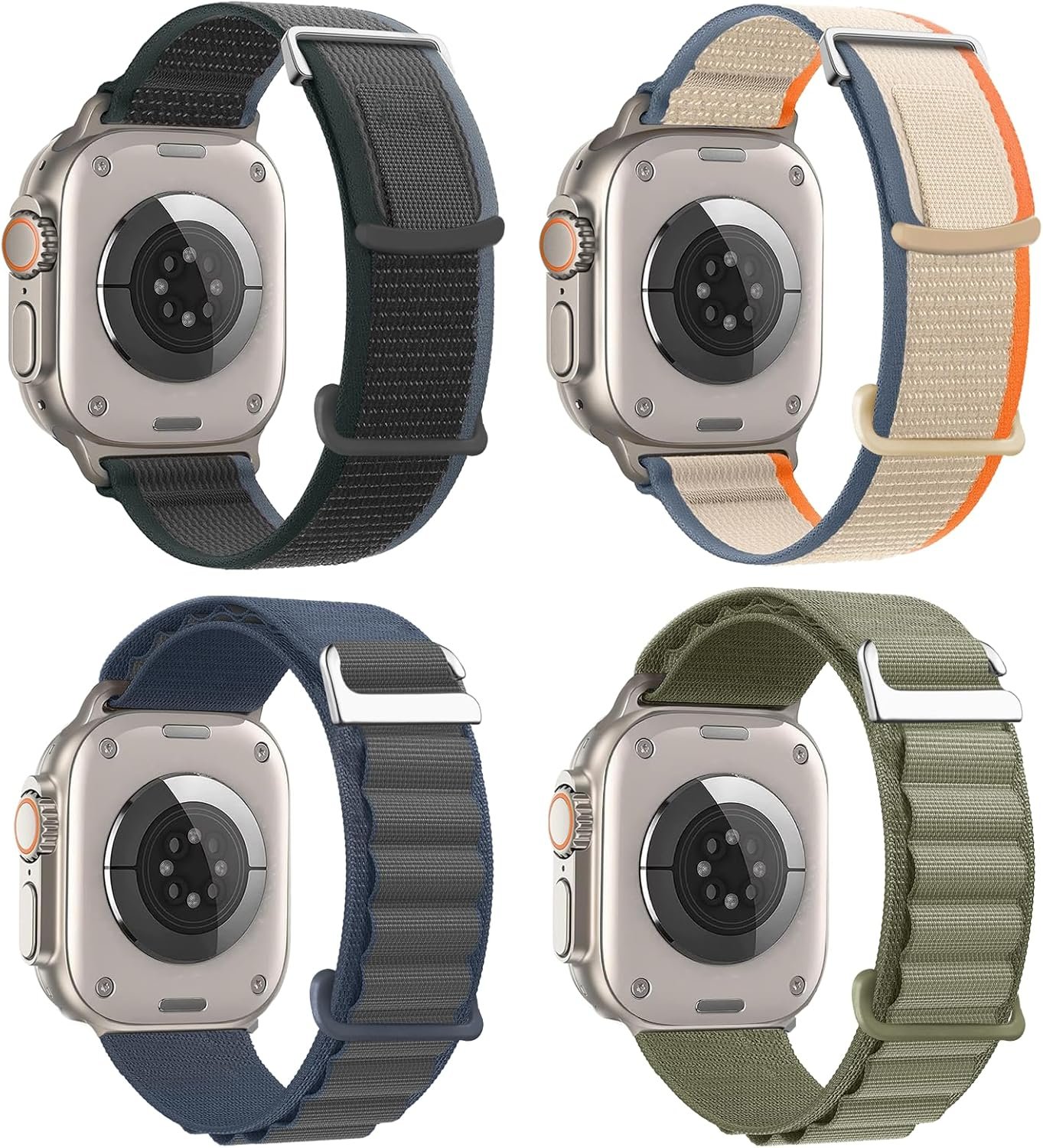 4 Pack Nylon Bands Compatible with Apple Watch Ultra 2/Ultra Band 49mm 46mm 45mm 44mm Men Women, Sport Breathable Trail Loop+Alpine Loop Bands Replacement for iWatch Series 10 9 8 7 6 SE 5 4 3 2 Ultra