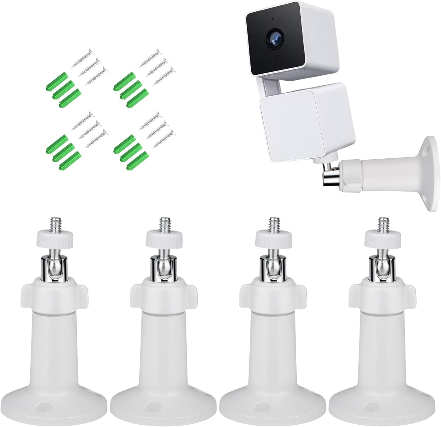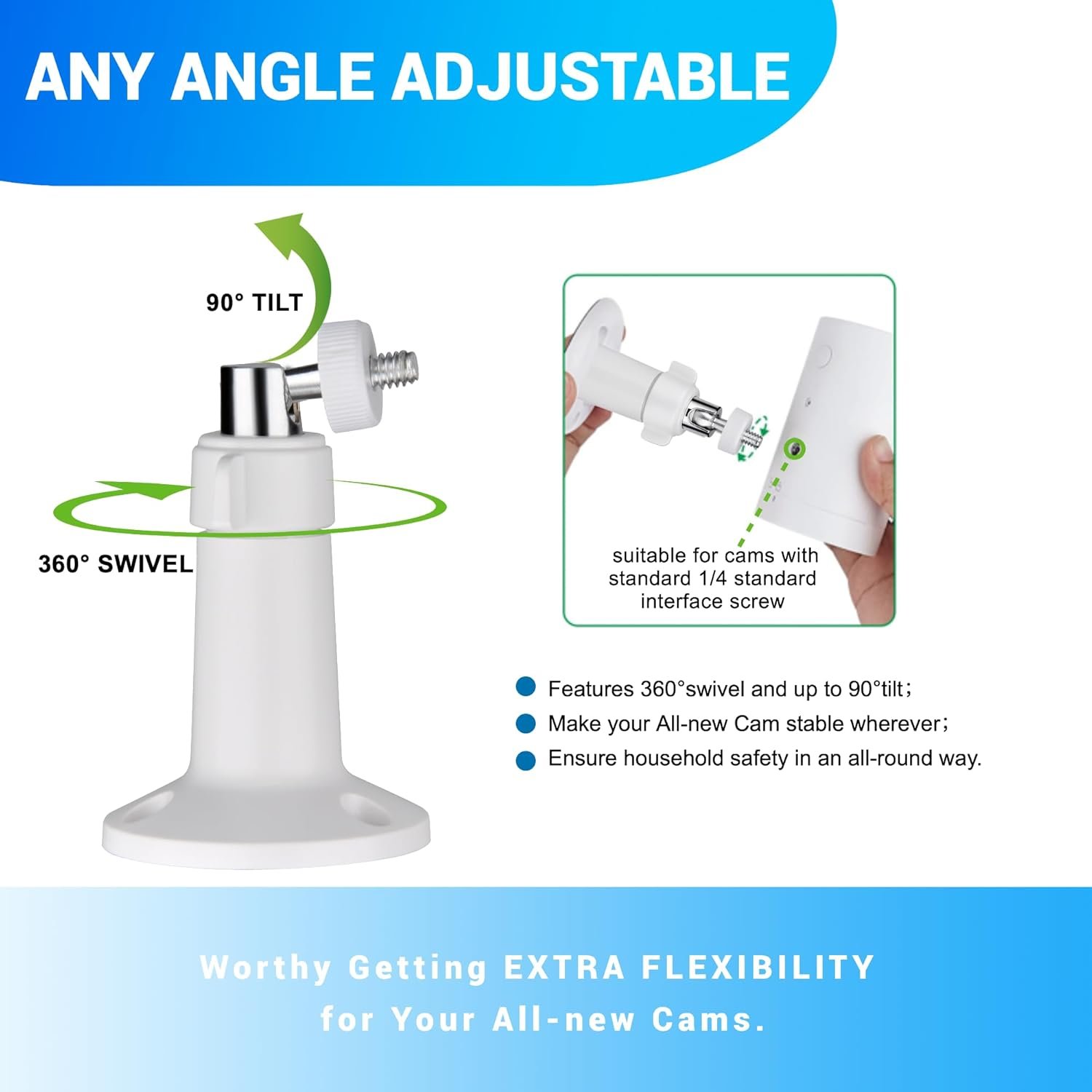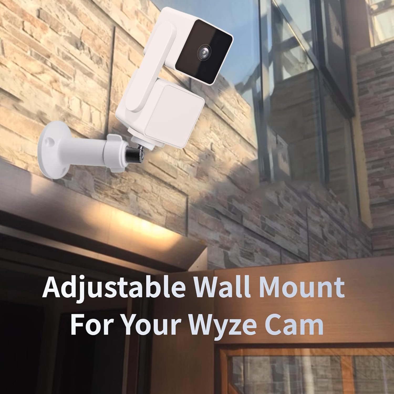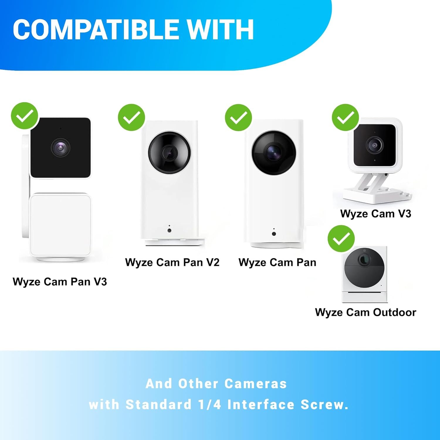 Compatible with Wyze Cam Pan & Wyze Cam Pan V2 & Wyze Cam V3, Adjustable Indoor Outdoor Mount for WyzeCam Pan/WyzeCam Outdoor/WyzeCam V3 or Other Cam with Same Interface.Wall mount for Wyze cam pan v3K,wall mount for Wyze Cam V4,Wyze Cam Outdoor wall mount.Flexible & Adjustable – It Can be rotated through 360 Degree Swivel and 90 Degree Tilt Loosing the plastic nut to get the angle adjustable Locking the plastic nut after pointing to the angle you need.Stable- Made of sturdy metal and ABS plastic material, oxidation resistance, can be applied to indoor or outdoor use.Easily adjustable with 360-degree swivel & 90-degree tilt For Indoor & Outdoor Use