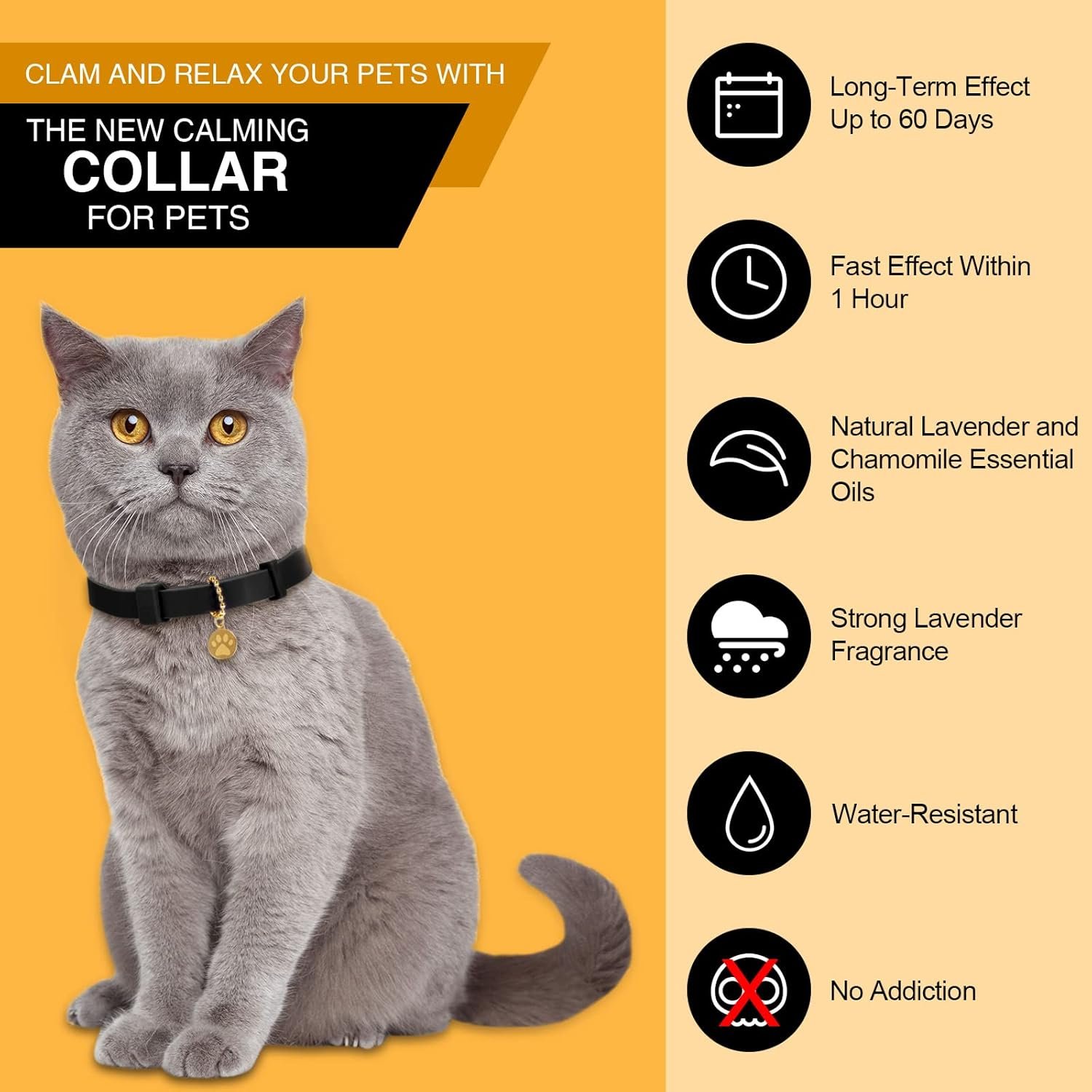 Safe and effective: the ingredients including lavender and chamomile essential oil are safe for pets and human; The calming cat collars start working within 1 hour of wearing and will release pheromones for lasting up to 60 days, which is suitable for cats of most ages and breeds without side effects