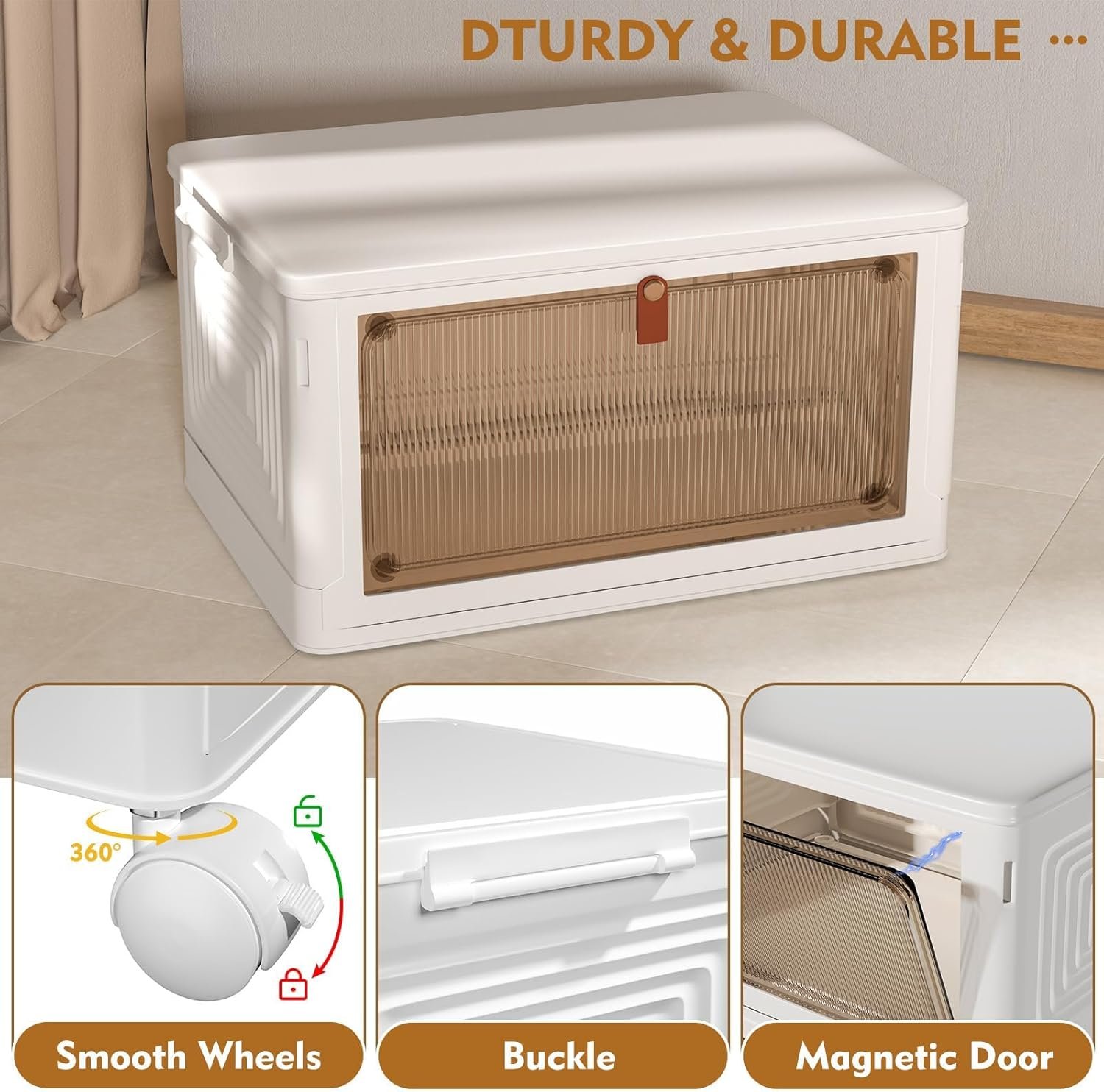 【Movable Storage Containers】There are 4 wheels at the bottom of the storage box, which can be easily moved when needed. In addition, the storage organizer’s 2 wheels have buckles that keep the wheel in place to prevent it from moving