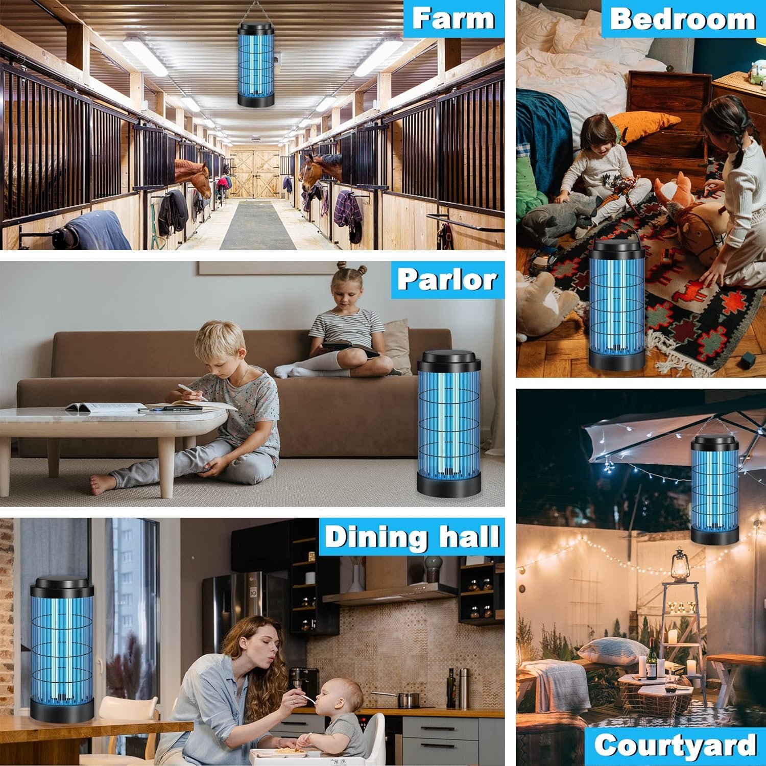 Keep away from bug zapper while using or people instead of blue light become an attraction for bugsPlease put the bug zapper in a dark place for optimal capture.The device could be hanged. You are suggested to hang it 3-4 ft to the floor and at least 1 ft to the wall.Clean up the tray and grid regularly if there are too many dead mosquito, flies and pests.Do not touch the electrical grid with wet hand or electricity conducting materials.Unplug the bug zapper before cleaning.
