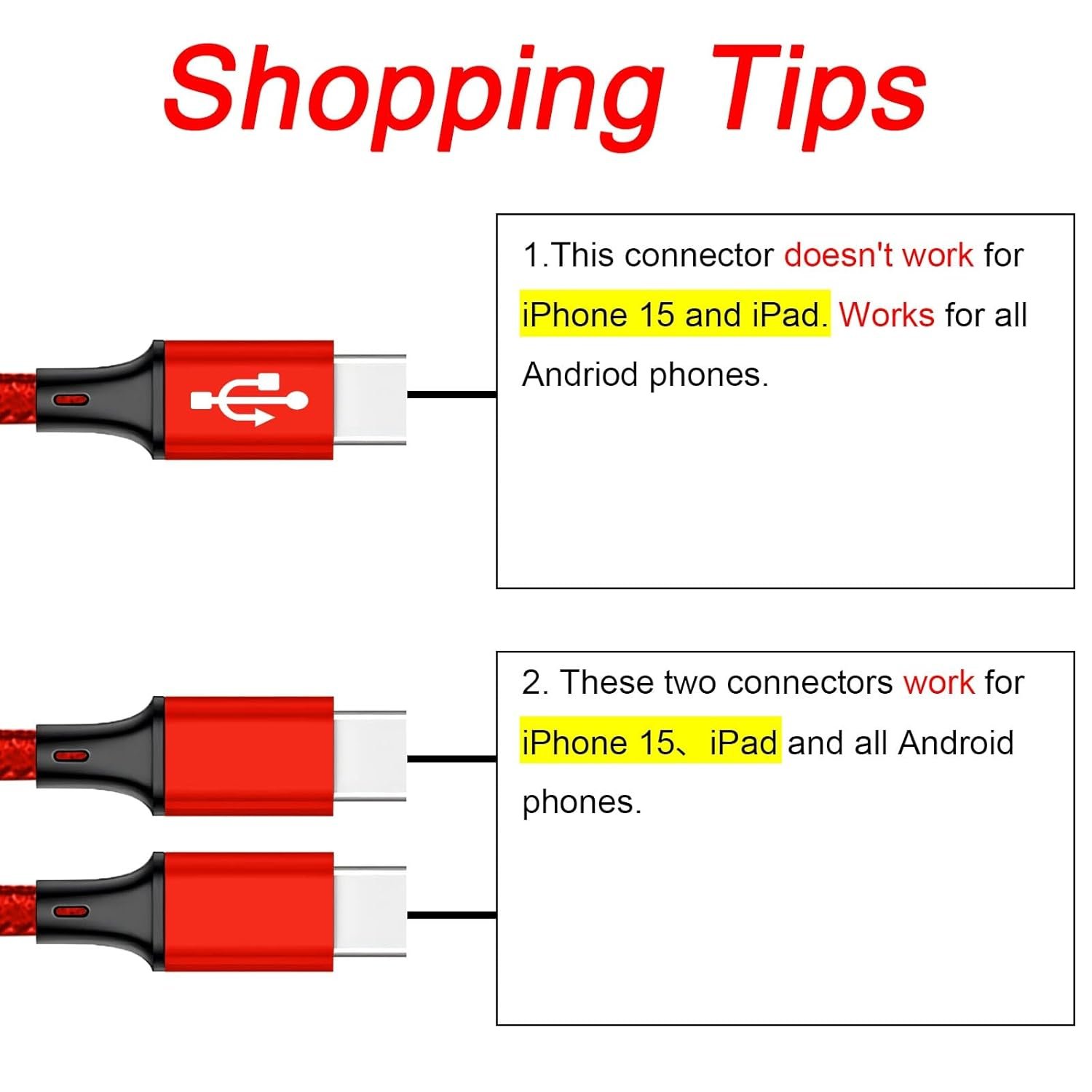 【Multi 3 in 1 Splitter Cable】3 Type C port charging cable, one USB C port can power three USB C devices at once, compatible with iPhone 15/Pro/Plus/Pro Max, iPad Pro/Air/Mini, Sam sung Galaxy S24/S23/S22/S21, Google Pixel, Android Cell Phones, Tablets, PS5 control, Amazon kindle fire, Cameras, power banks, E-readers any USB C powered device.