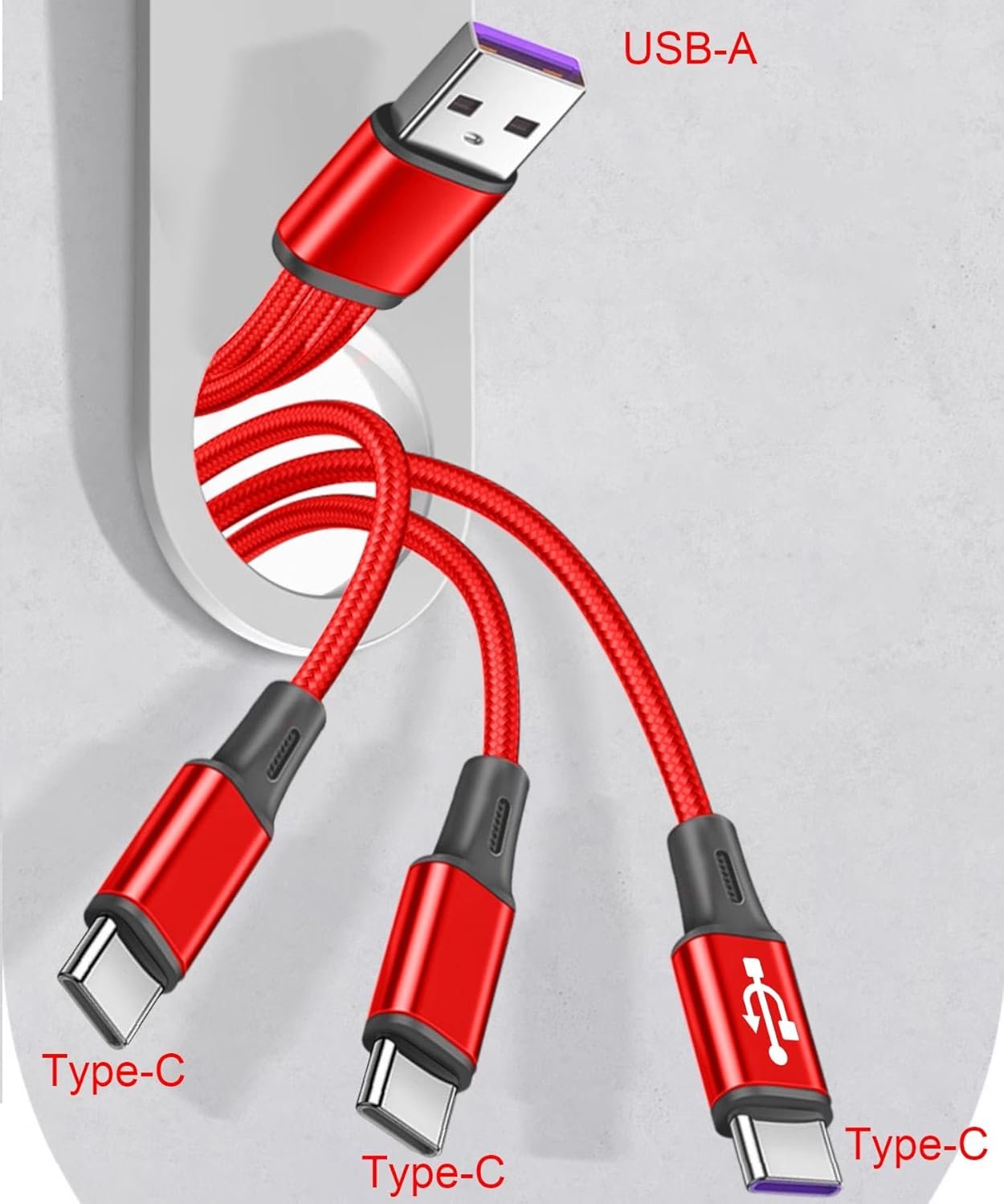 1 x USB-A to 3 TYPE-C Port USB2.0 Cable 4FT Red