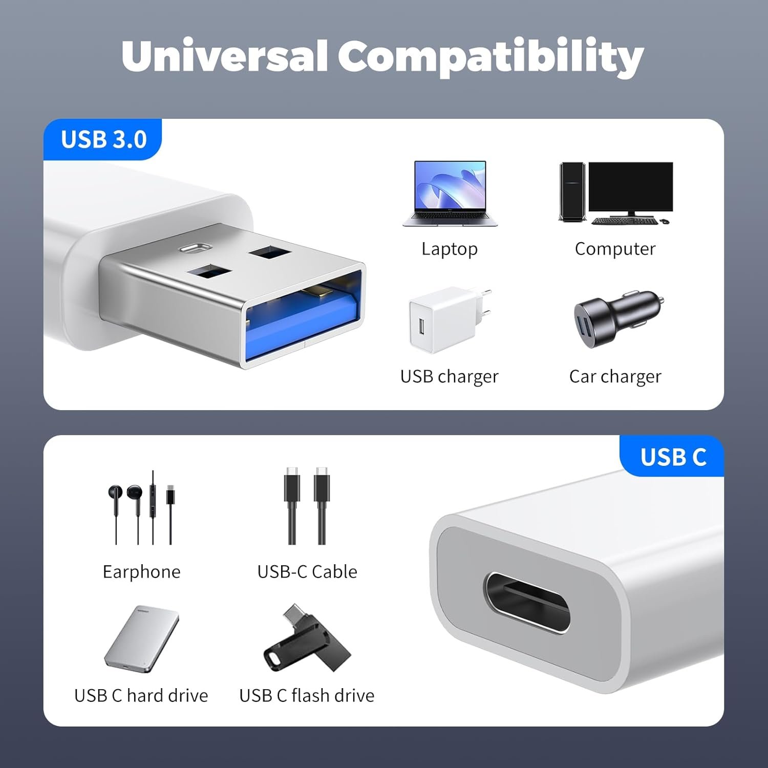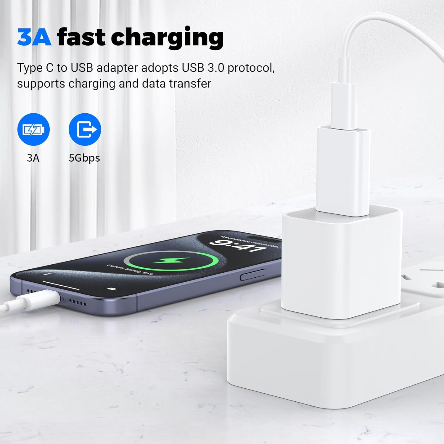 [Wide Compatibility] This usba to usbc adapter works with Type-C cable that is compatible with iPhone 16/15/14/13/12 Pro,Pro Max,Plus;for Apple Watch Series 9/8/7/6/Ultra 2/1; for iPad Pro 11,12.9, for iPad Air,for iPad Mini;Galaxy S23/S23 Ultra;Pixel 7;Type-C headphones,laptops,flash drive,card reader,webcam,keyboards,mouse etc.