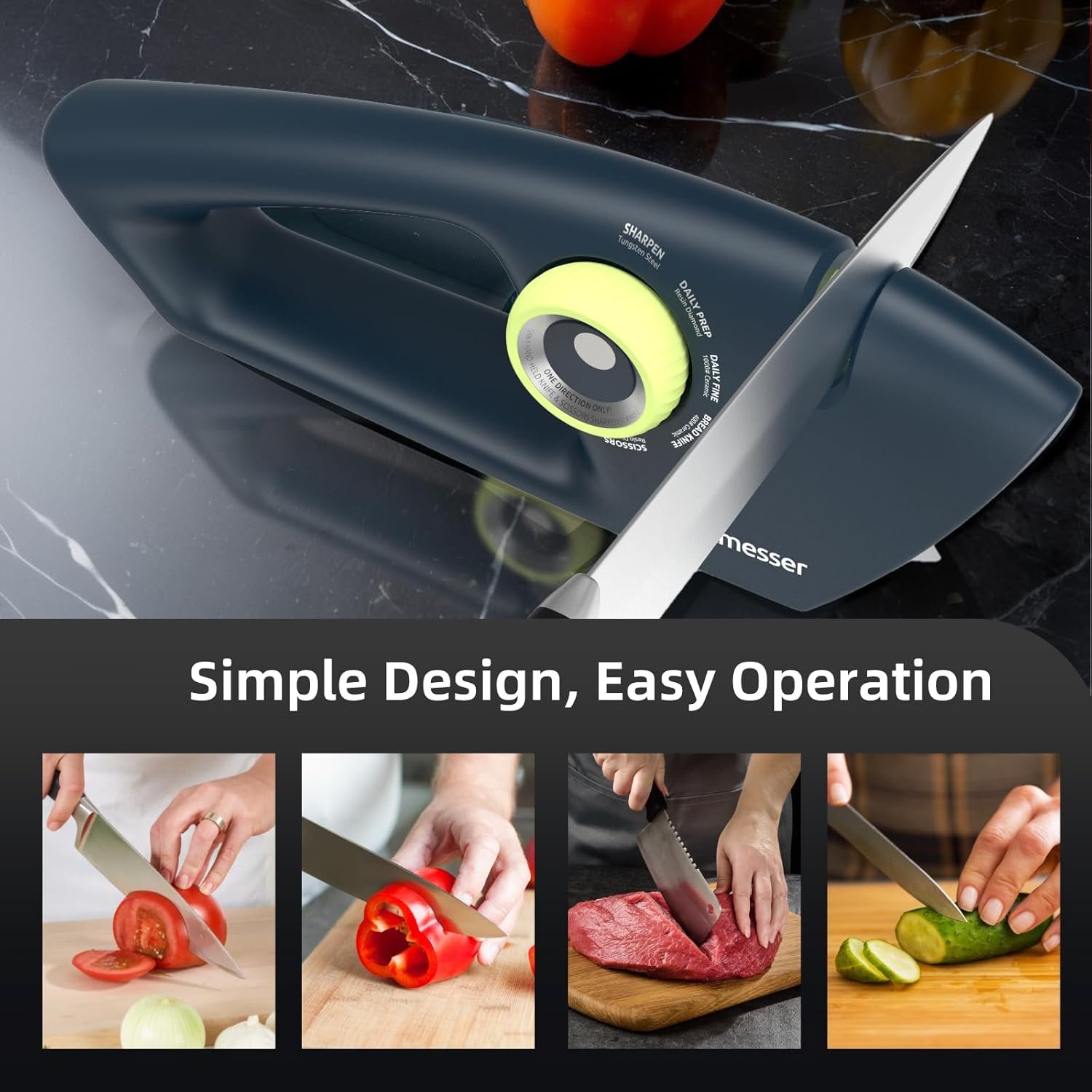 Adjustable Sharpening Slots: Equipped with an adjustable dial, users can select different sharpening slots based on the type of knife, ensuring optimal sharpening results every time. It’s simple to operate.