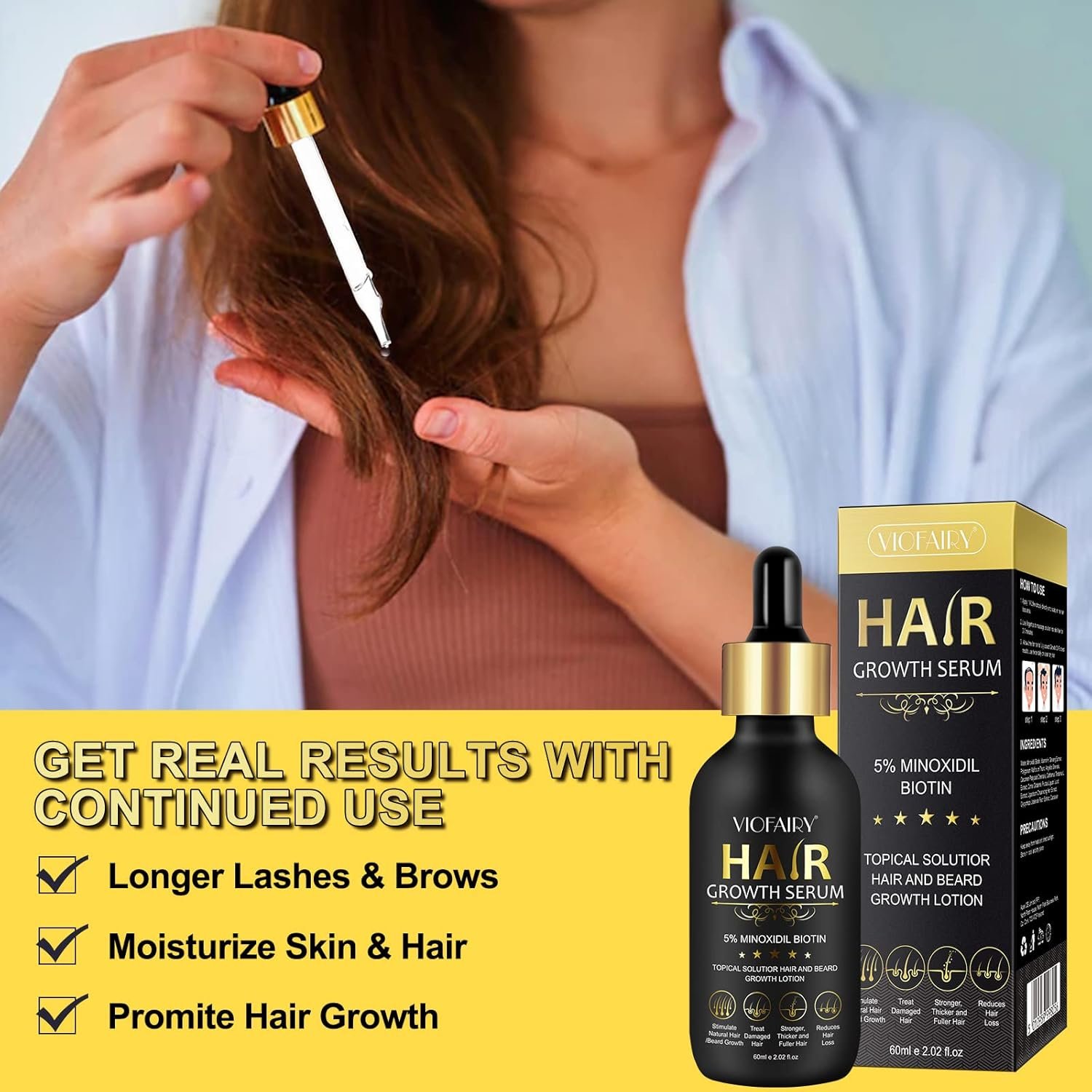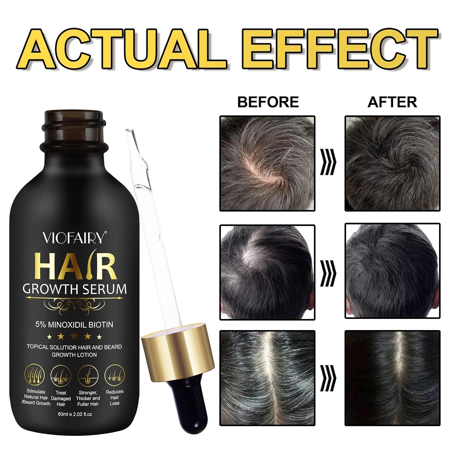 POWERFUL HAIR GROWTH FORMULA – 5% Minoxidil and Biotin these 2 main ingredients in combination with several vitamins, antioxidants, and nutrients, restore dying hair follicles, maintain hair density, and promote healthy regrowth for fuller hair. The most active ingredient is 5% Minoxidil is the #1 Dermatologist Recommended ingredient for hair loss and is clinically proven and effective for hair growth. NDC:83804-109-01