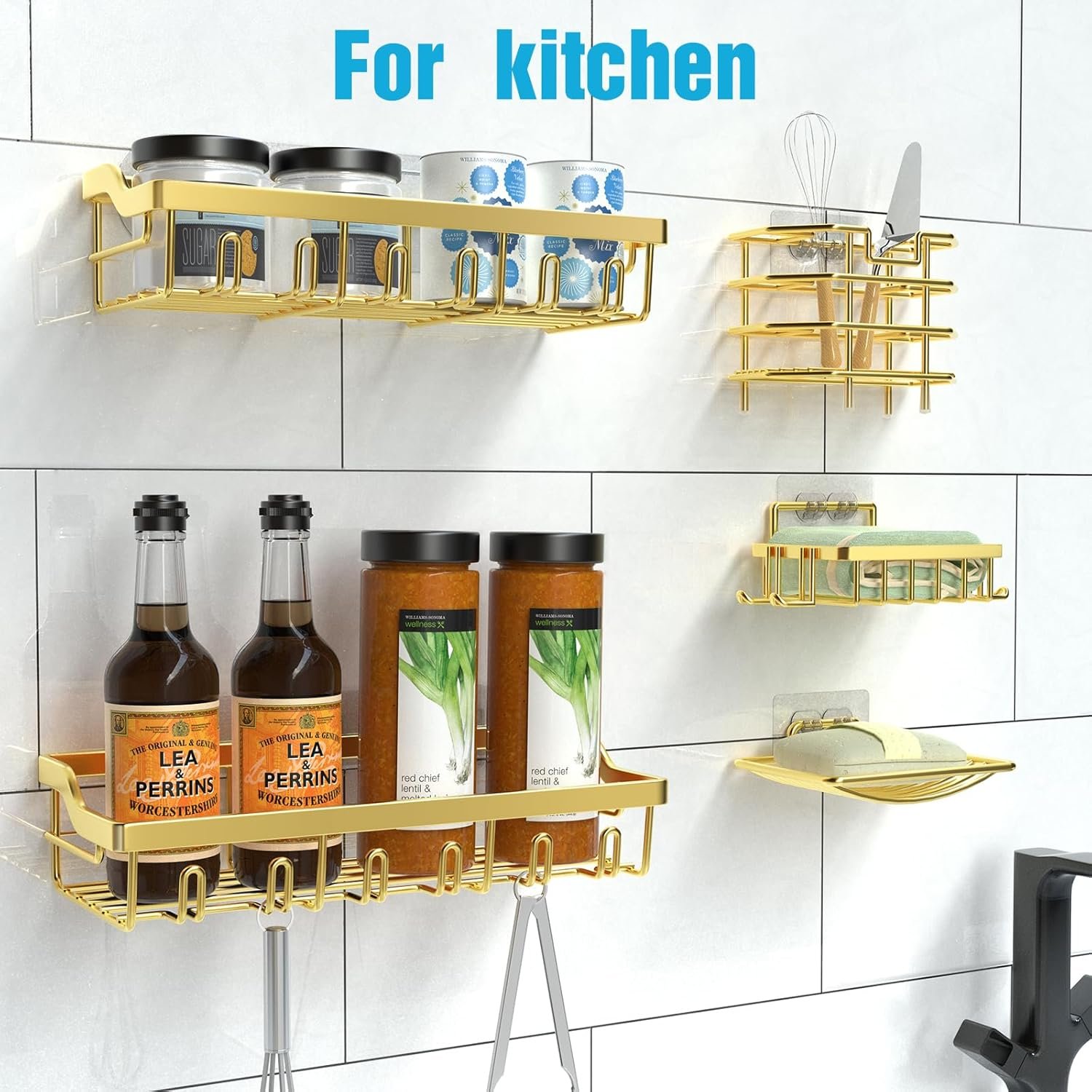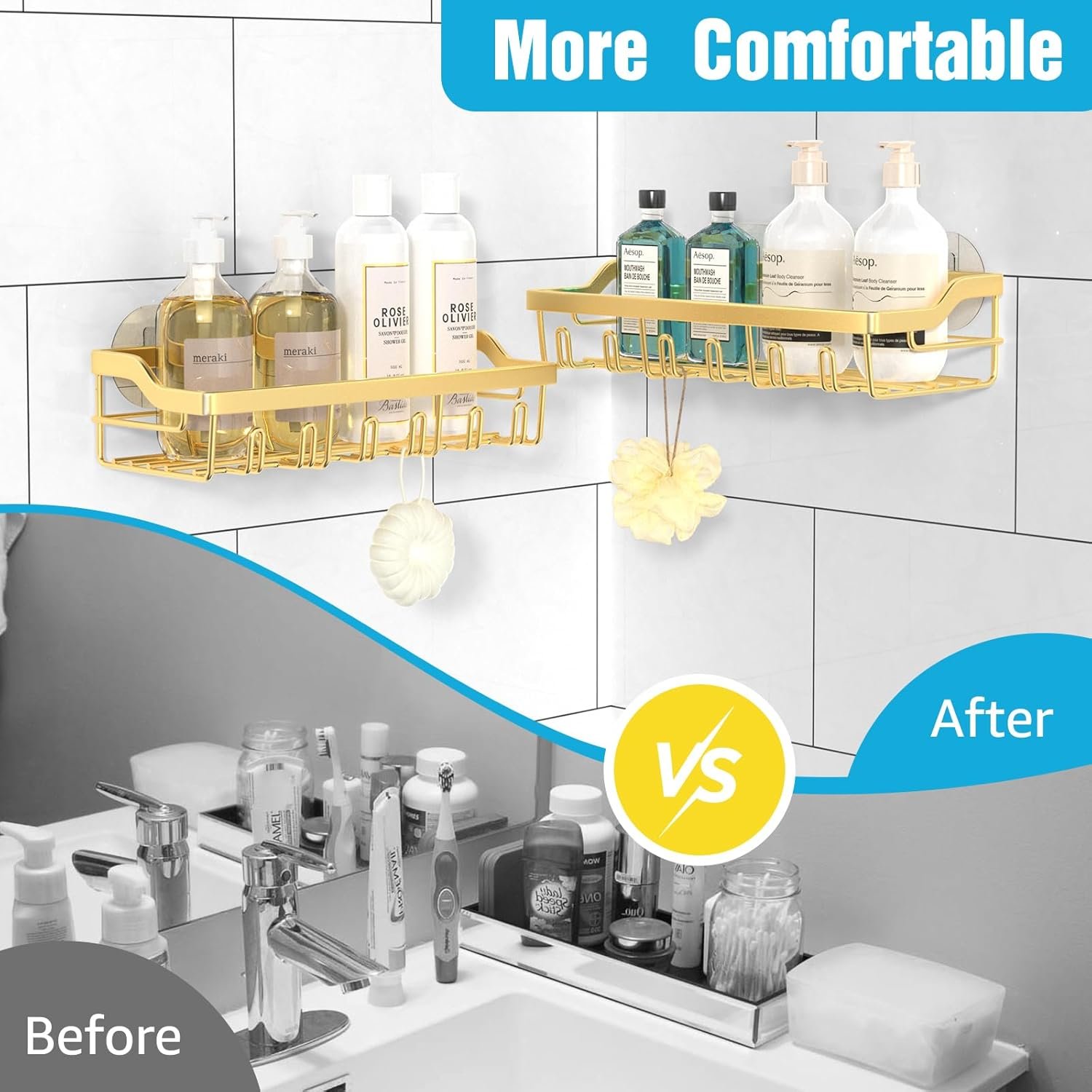 5PCS SHOWER SHELVES SET: Hsiohe shower shelves set comes with 2 shower shelves, 2 soap holders and 1 toothbrush holder. Suitable for bathroom, kitchen, living room and bedroom. Large capacity shower organizer can easily store washing supplies or cooking seasonings, make full use of the space and facilitate life.