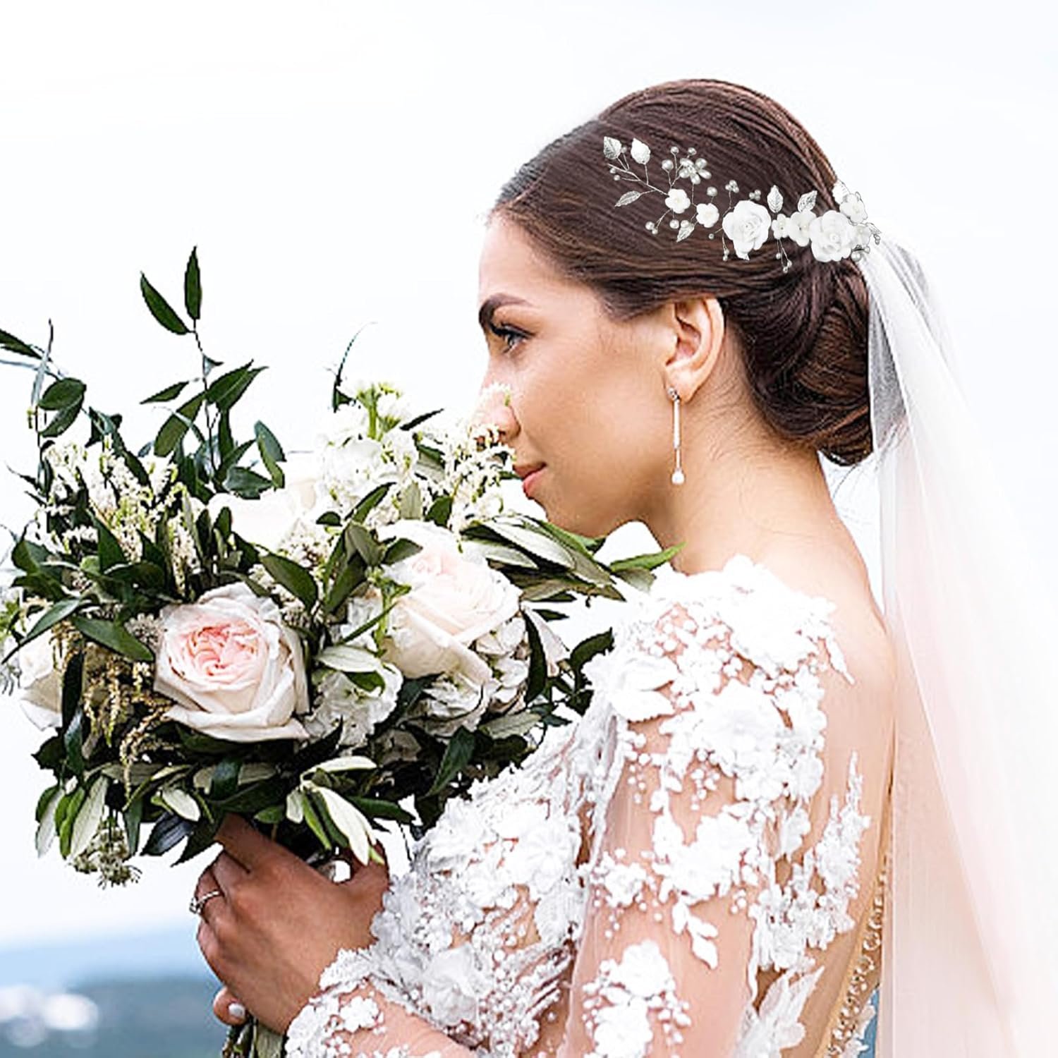 [Light and delicacy] These hair accessories are exquisite and compact designs, not only have rich decoration, but also very light, ceramic flower headband 33g, silver crystal pearl headband 21g, pearl crystal hairpin 7g. Neither girls nor women feel discomfort.