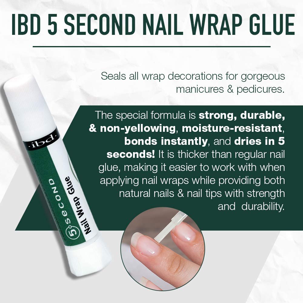 CONVENIENT NAIL WRAP GLUE IN THREE PACKS: Never run out of IBD’s 5 Second Nail Wrap Glue – your perfect nail glue to fix splits, cracks on natural nails and full cover nails, tips, wraps! Go-to by professional nail salons and nail art lovers, it offers the fastest set time, maximum moisture resistance for high-speed nail wrap applications and nail reinforcement. Keep one in your bag for emergency broken nail repairs, Keep your nails strong and beautiful-looking every time with this!