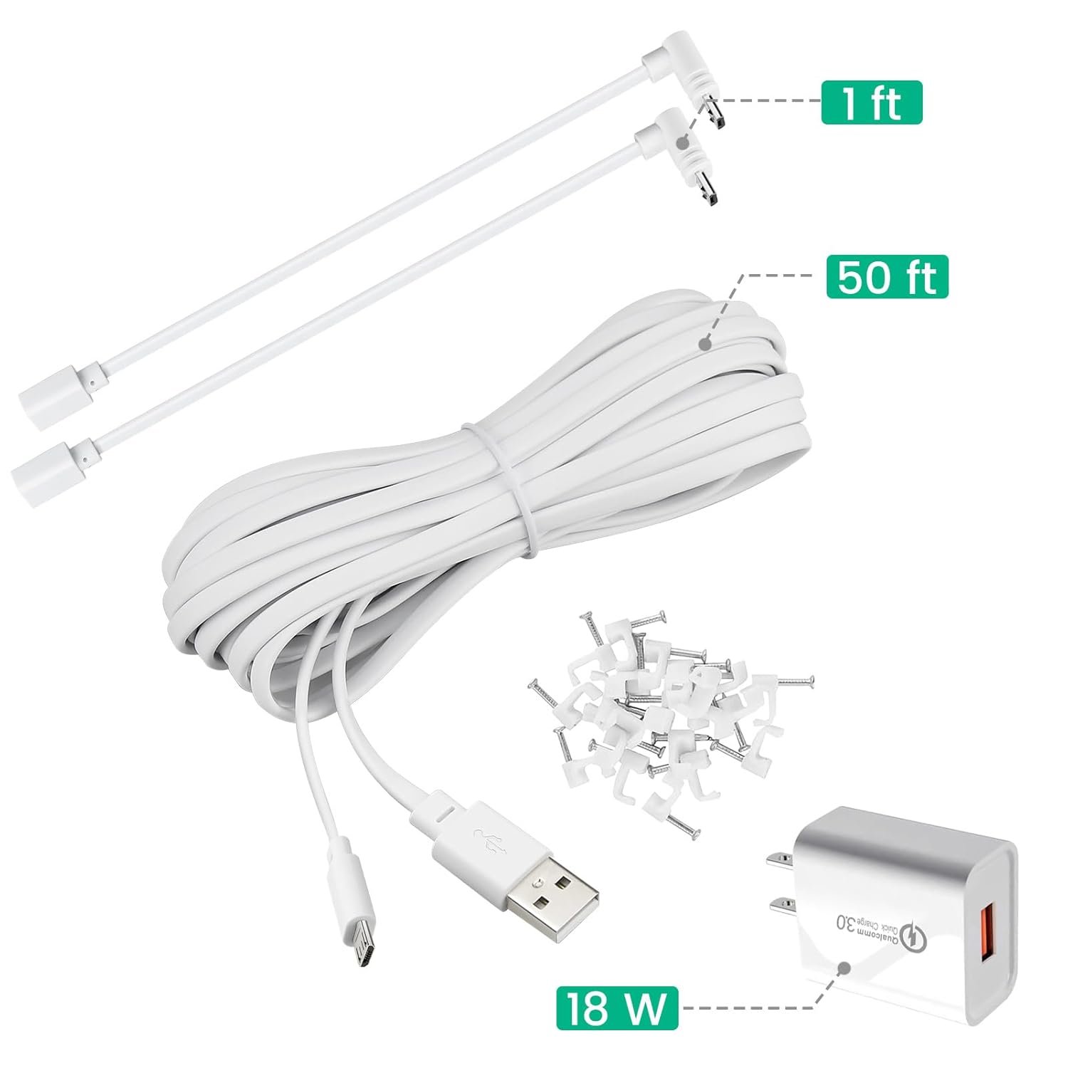 50 ft Camera Extension Cable for Wyze Cam v4, Wyze Cam Pan v3, Wyze OG, Wyze Cam v3 and v3 Pro,Outdoor Charging Cord with L-Shaped Adapter and 18W Power Adapter