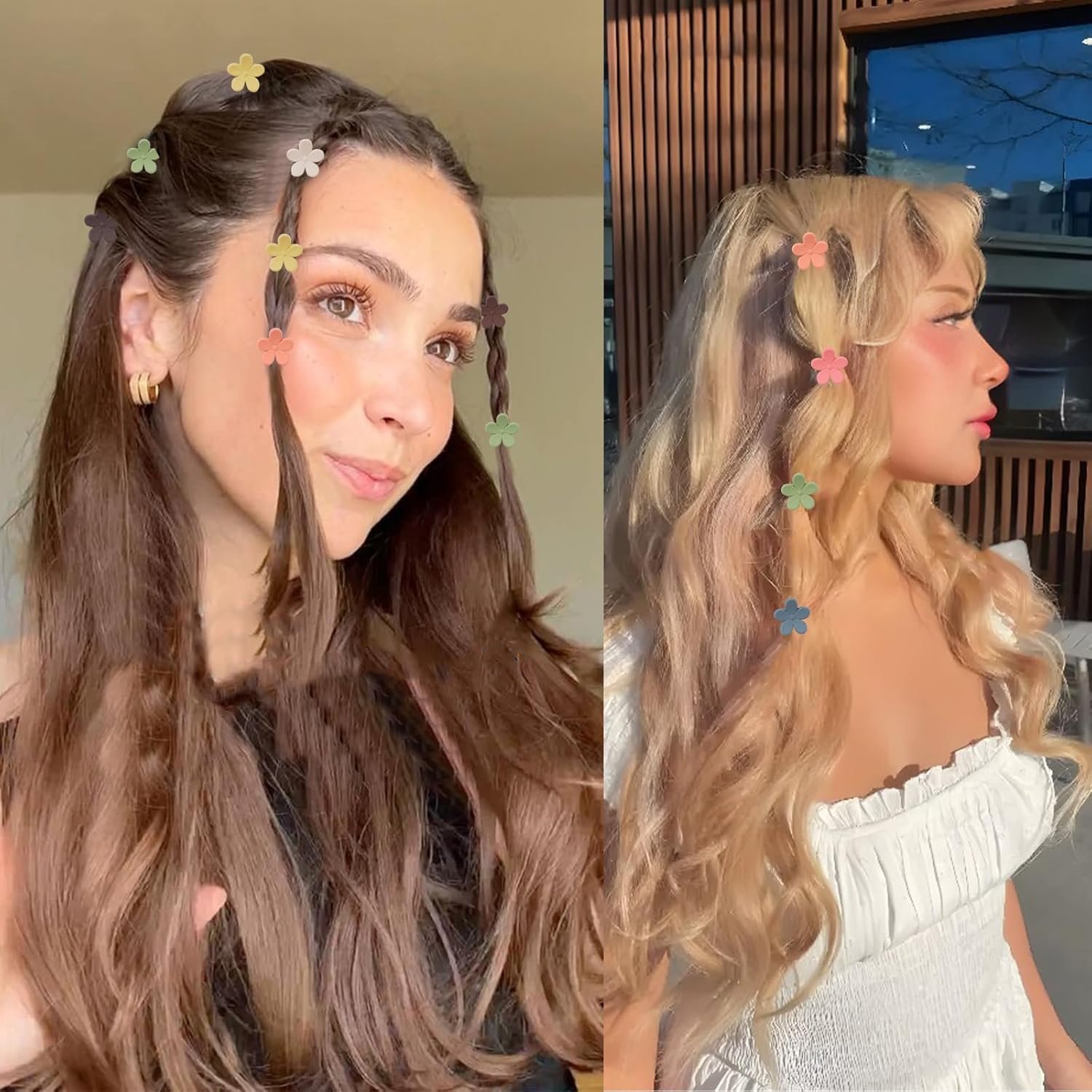 Packaging includes:Package comes with 50 pieces of mini flower hair clips in different colors. Pack in a box to meet your storage needs. Classic colors can meet all your hairstyles, such as mini braids, French braids, ponytails, and paired with different colored clothes to add a charming temperament.