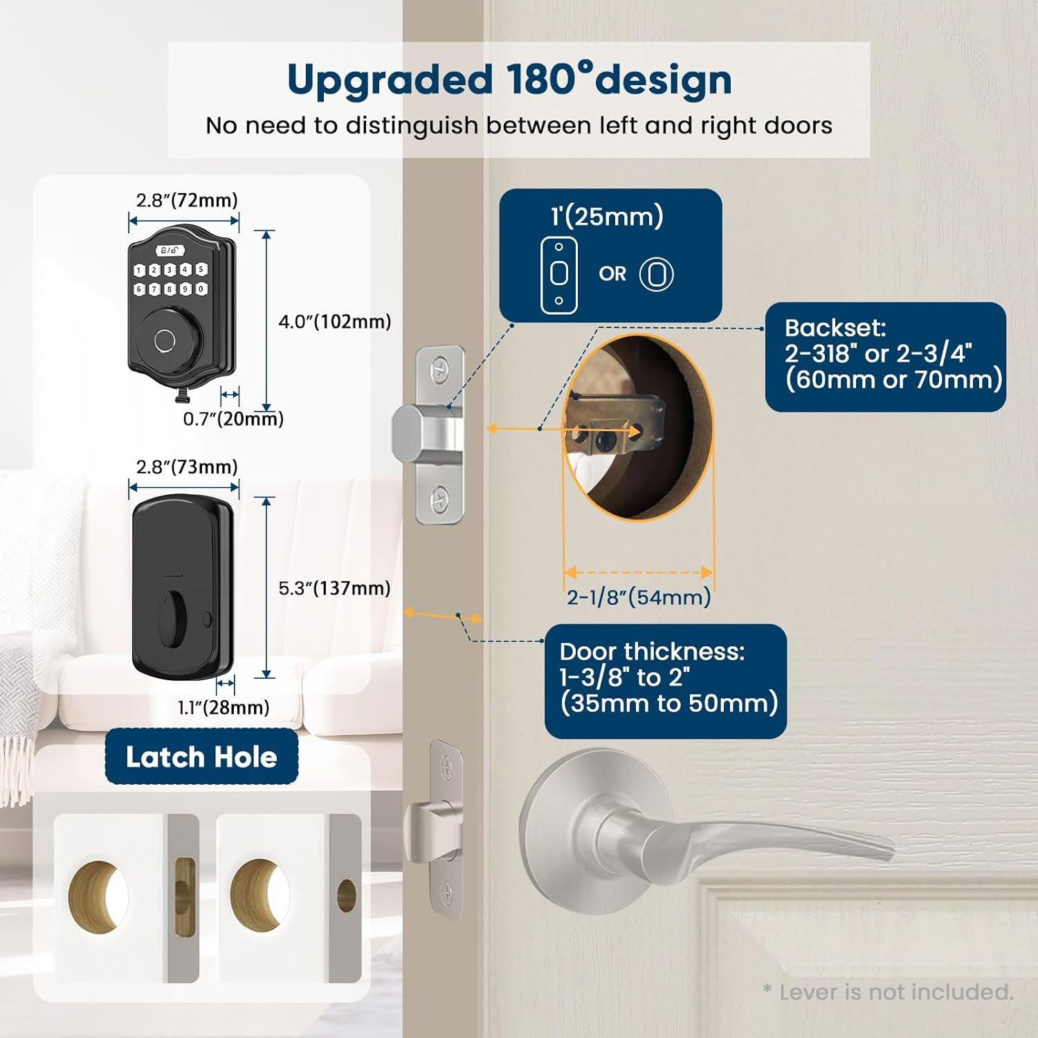 Easy to Install: This upgraded 180° design smart door lock compatible with most standard US left handed and right handed doors, which can be automatically identify left and right doors, no manual settings required. Voice navigation function which supports multiple languages makes your installation and use more convenient and simple.
