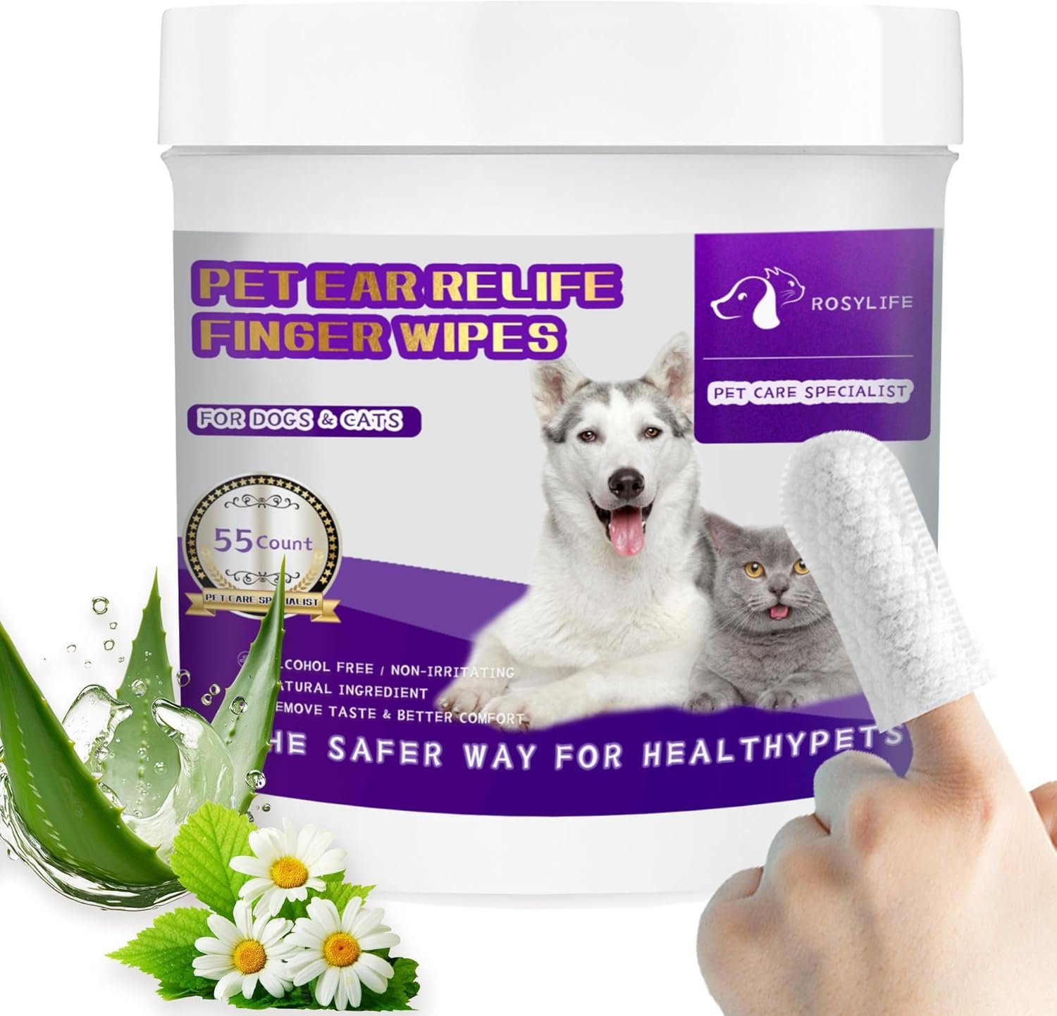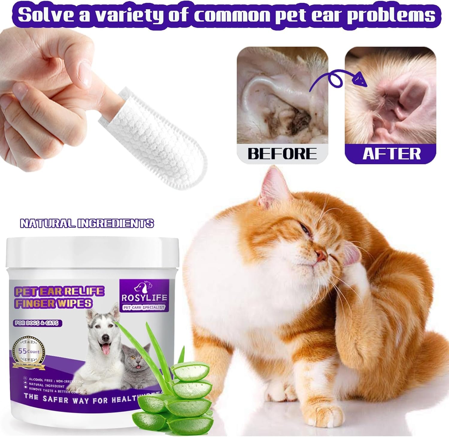 55 Count PET Ear Cleaning Finger Wipes for Dogs & Cats,Ear Cleaner Finger Wipes,Removes Dirt & Odor,Easy to Use, Natural Ingredients (Ear Cleaning Wipes)