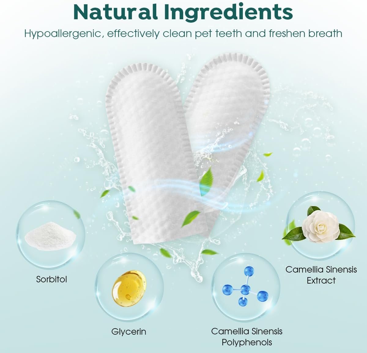 Freshens Breath: Say goodbye to doggy breath. Our soft finger dog dental wipes reach those tricky spots with ease. Infused with natural camellia extract, the dog dental wipes effectively banishing bad breath.