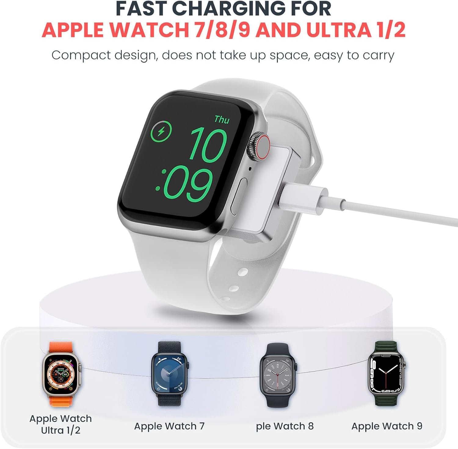 【Dual Interfaces】Magsafe fast charger with two interfaces, iPhone Power Cable and USB Type-C. You can use either cables to charge your apple watch, solving the trouble of carrying many charging cables and mess, 2-in-1 design making charging more diverse and convenient for traveling