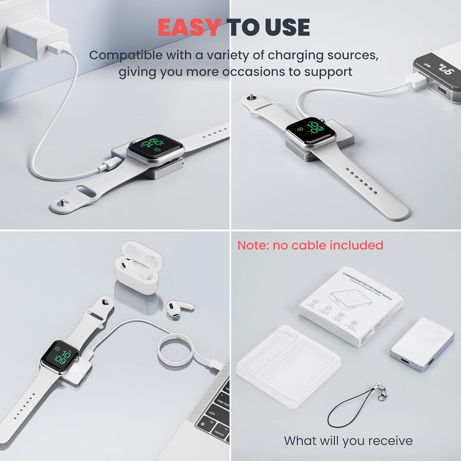 【Save Your Space】Made of zinc alloy metal, the heat dissipation performance is better than plastic, providing fast charging for your watch, the metal appearance is more texture, fashionable and generous. Meanwhile, the charger is compact and easy to use, you can put it in your pocket or travel bag, equipped with a keychain, Handy yourself