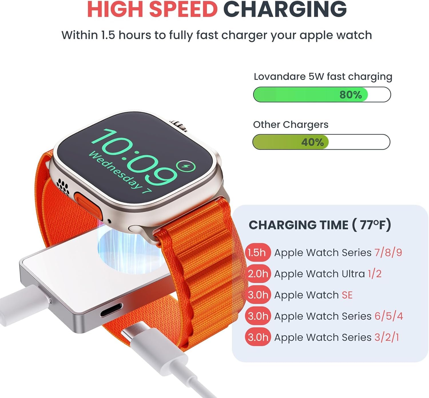 【About Us】Lovandare provide users with a convenient and fast charging experience, dedicated to be your good partner in home, outdoor travel, leisure, study and work. Make sure you don’t get anxious about your watch running out of power or charging slowly. If you have any problems with the Apple Watch charger, please contact us in time and we will help you solve the problem asap.