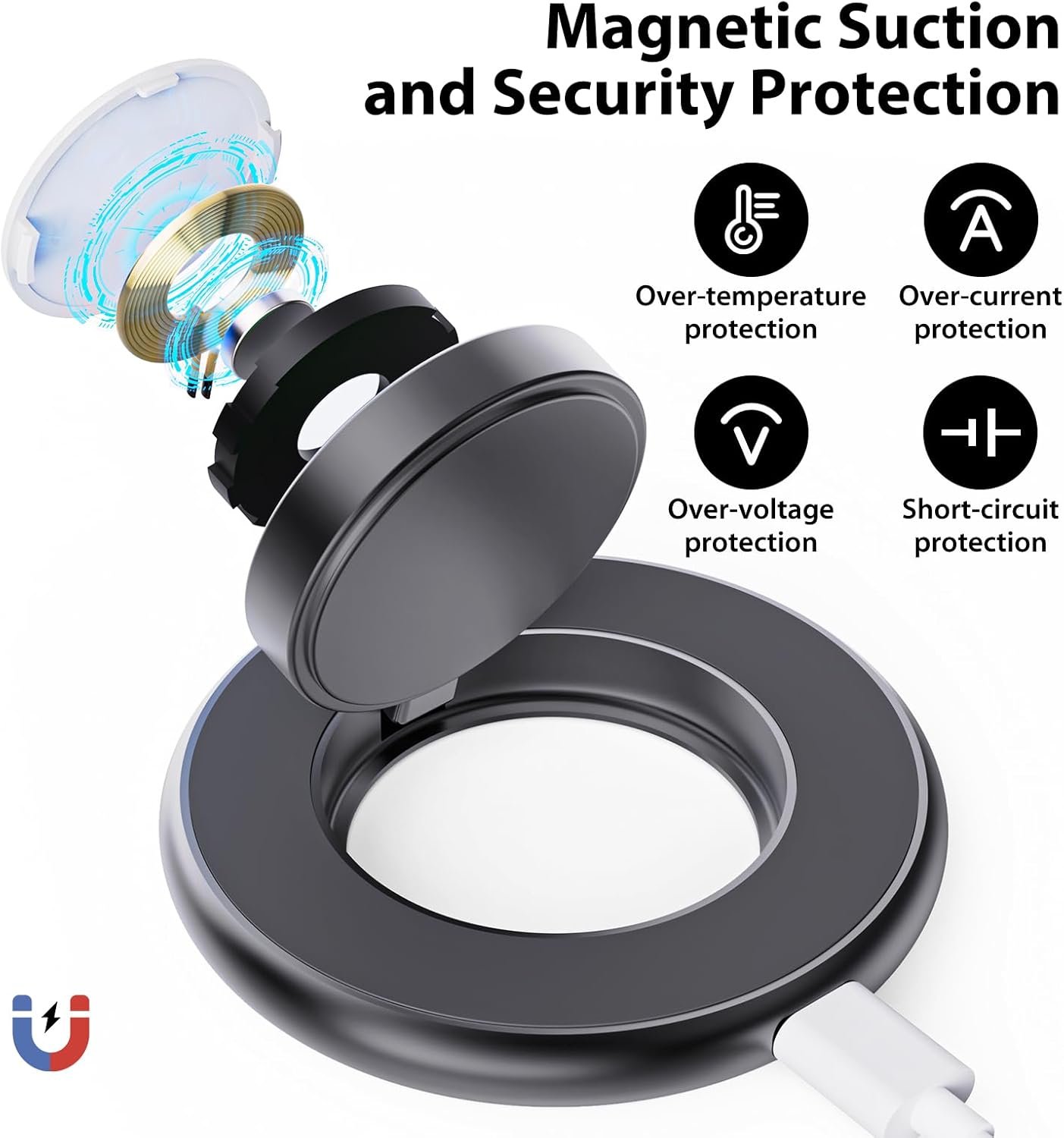【Magnetic Connection and Safe Protection】The iwatch charger uses the latest Mag-Safe charging technology to ensure perfect alignment and strong magnetic connection. Simply align your Apple Watch on the dock and start charging. It supports over-current, over-voltage, over-temperature, and short circuit protection. The charger automatically stops charging when the watch is fully charged, so you never have to worry about overcharging. (Please note: Power adapter is not included)