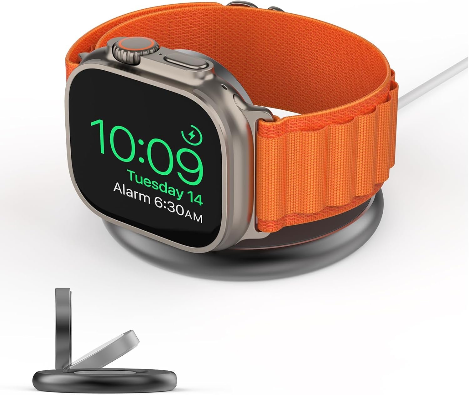 【Foldable & Portable Charging Stand】Designed for Apple Watch charger. Compared to ordinary chargers, this iwatch charger has the dual function of upright charging or flat charging. It weighs only 0.18lb and is only 0.35in thick. It can be folded flat, making it compact and portable for travel, and won’t take up too much space in your pocket or bag. Ideal for carrying at home, office, or while traveling. Quickly charge your Apple Watch anywhere and anytime.