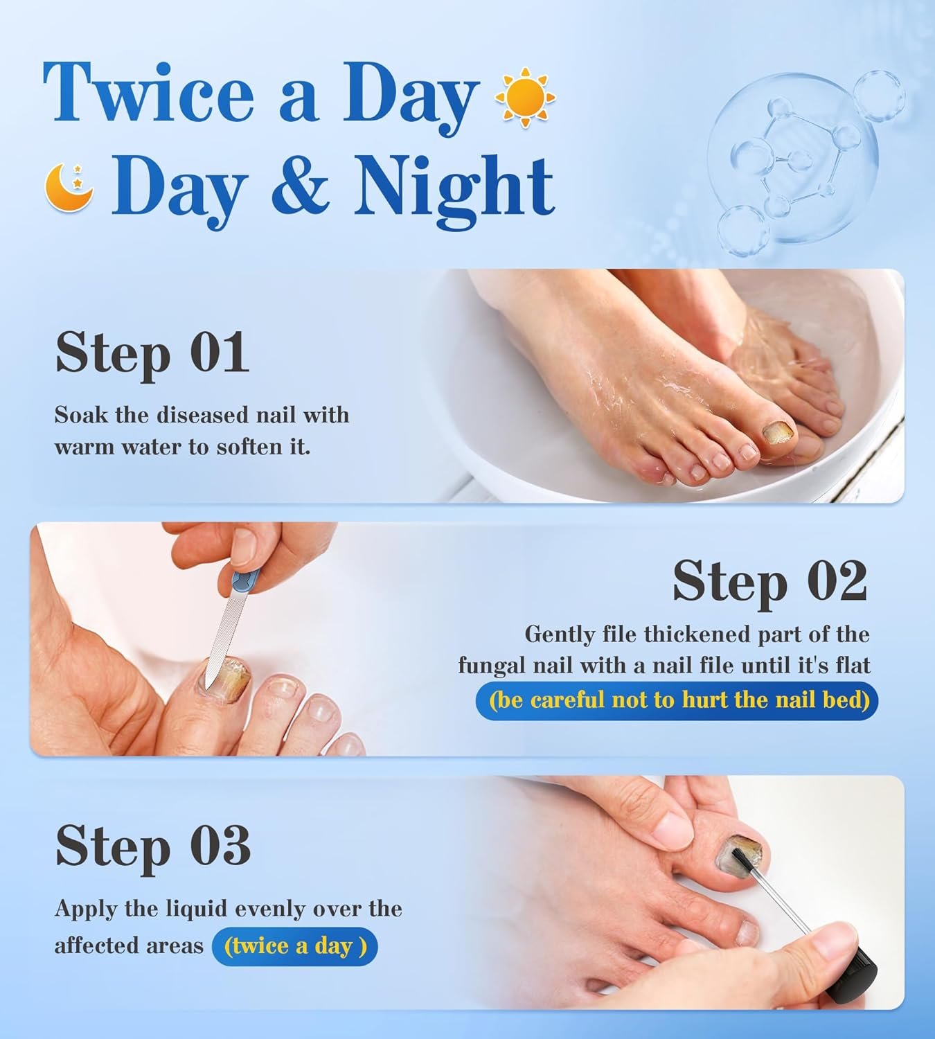EASY TO USE – CONVENIENT HOME REMEDIES: Our toenail fungus treatment includes two brushes and a nail file to enhance the effectiveness of your treatment. With these tools, your treatment becomes more effective. Start by soaking the affected nail in warm water to soften it. Then, gently file the thickened part of the nail with the nail file until it is smooth (be careful not to hurt the nail bed) . Finally, apply the medication to the affected area, typically twice a day.